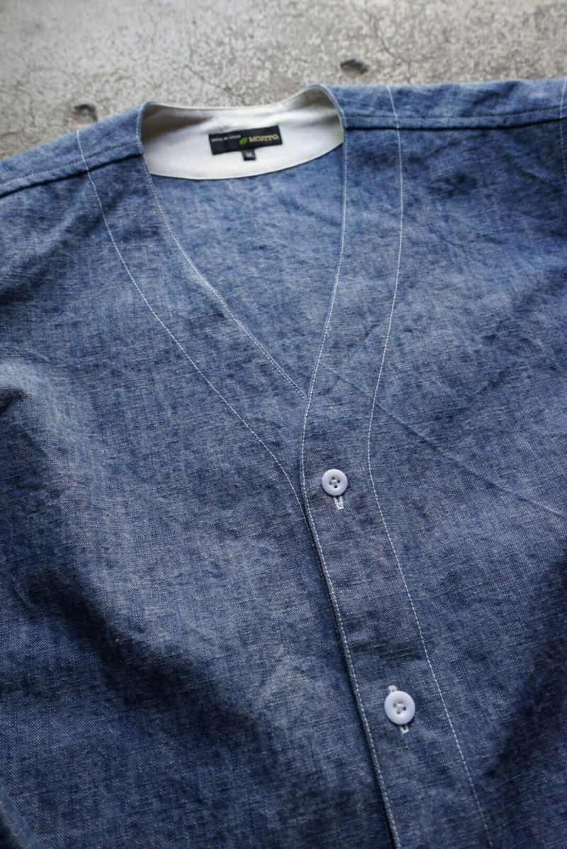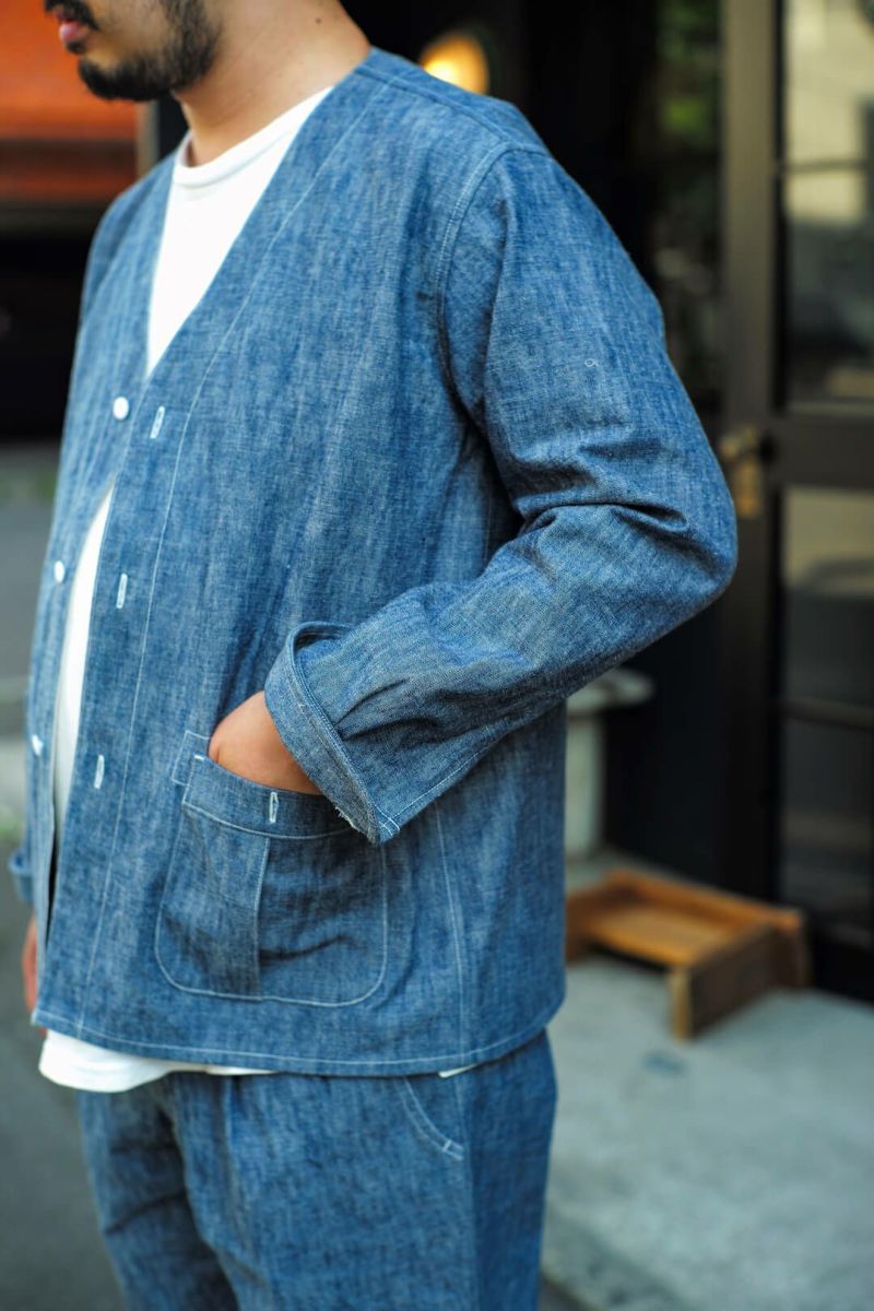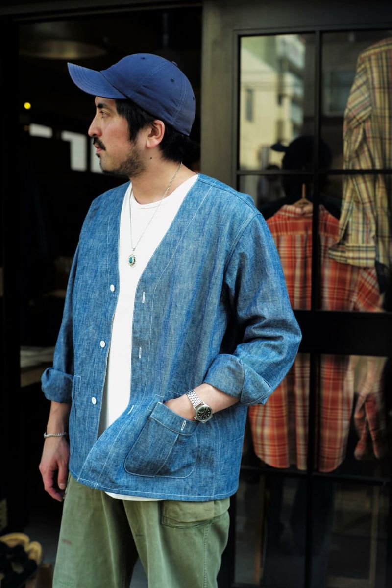 MOJITO(モヒート) MOJITO定番のFINCA VIGIAカーディガン。13ozのシャンブレー生地を用いた一着は、デニムとはまた違った印象を与えてくれます。デニム並みの生地のはりがありながらシャンブレーの風合いも楽しめる一着です。PANTSとセットアップで着用もおすすめのコーディネートです。 <素材> COTTON 100% <生産国> MADE IN JAPAN 商品についてのブログはこちら MOJITO FINCA VIGIA CARIDGAN 13oz PRICE ¥41,800(税込み)