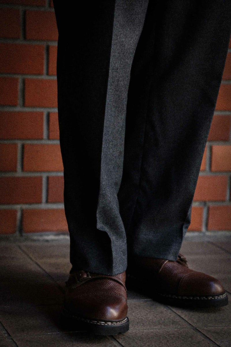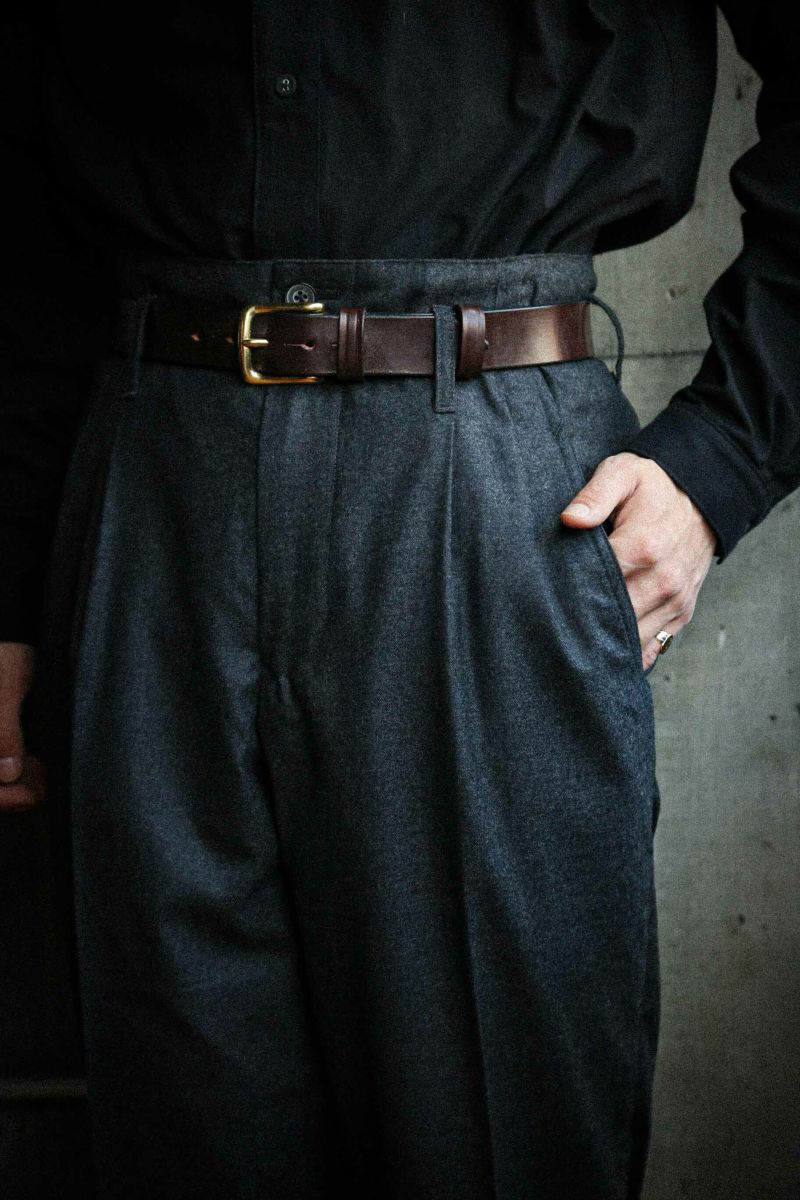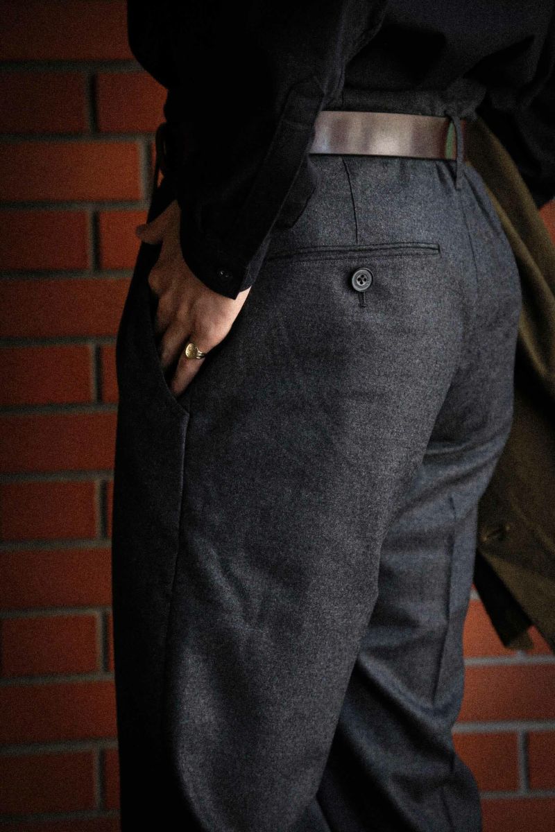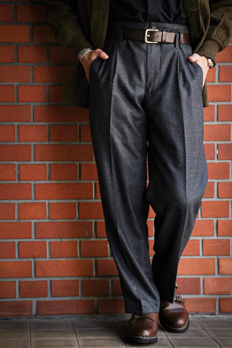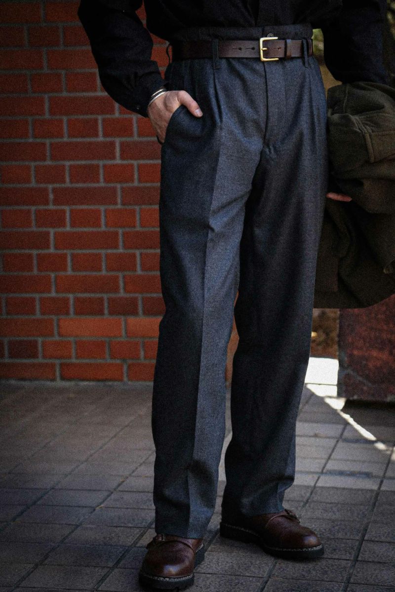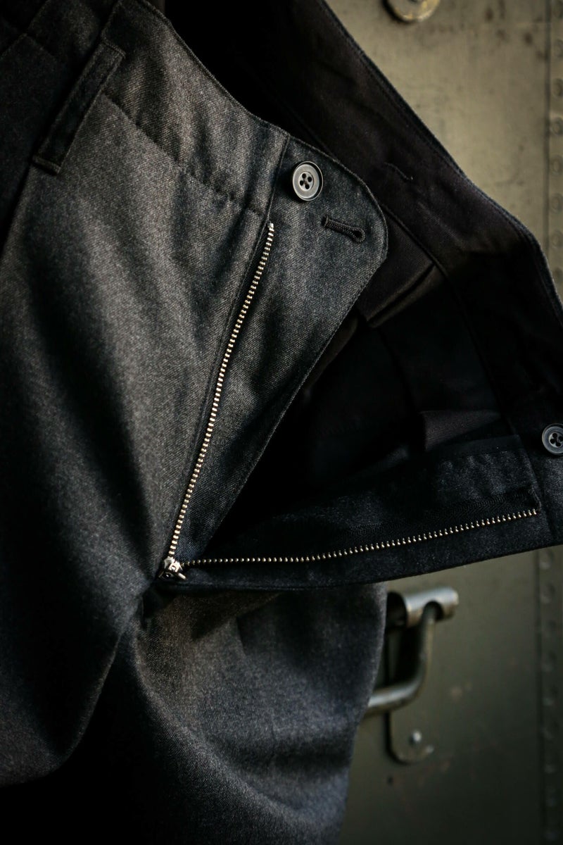 MOJITO GULF STREAM PANTS WIDE ARCH TOKYO EXCLUSIVE アーネストヘミングウェイが、船釣りの際に履いていた、ベルトループが下がり気味で、2タックのショートパンツが着想となる、MOJITOを代表するアイテムGULF STREAM PANTS(ガルフストリームパンツ) 新型となるWIDEシルエットのガルフストリームパンツに、しなやかなチャコールグレーのウールフランネル素材を乗せたARCH TOKYO別注モデル。 クラシカルなトラウザーの要素とブランドらしい無骨さを兼ね備えた唯一無二のトラウザーです。 表地 : 毛 100% MOJITO GULF STREAM PANTS WIDE ARCH TOKYO EXCLUSIVE Price ¥59,400-(税込)