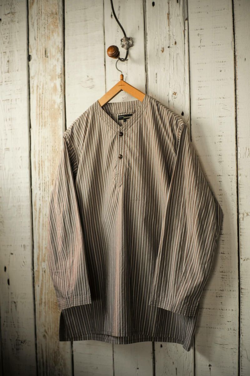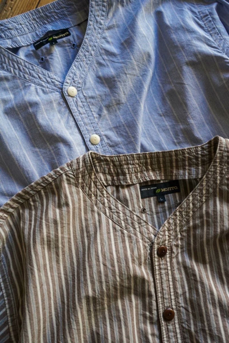 MOJITO(モヒート)がオマージュするヘミングウェイが、1954年に入院していた際に着用していたシャツがデザインソースになった"SLEEPING SHIRT 1954 Bar.6.0" ミリタリーのスリーピングシャツの匂いも感じるV-NECKの仕様とプリオーバーの潔いデザインが特徴的です。 リラックスしたたっぷりとした身幅なので、ラフに一枚で着れるアイテムです。 キーウエストとキューバとメキシコ湾流をこよなく愛した、稀代の文豪アーネスト・ヘミングウェイへのオマージュであり、男たちのための「道具としての服」。 ブランド名は、ヘミングウェイが愛したとされている酒、モヒートに由来。デザイナーである山下裕文氏がヘミングウェイの作品を読み説き、自身の服に対する哲学を通してヘミングウェイの人物像や時代背景、生活シーンなどを表現しています。 生地 : Cotton 100% MOJITO / SLEEPING SHIRTS - Price ¥28,600-(税込)