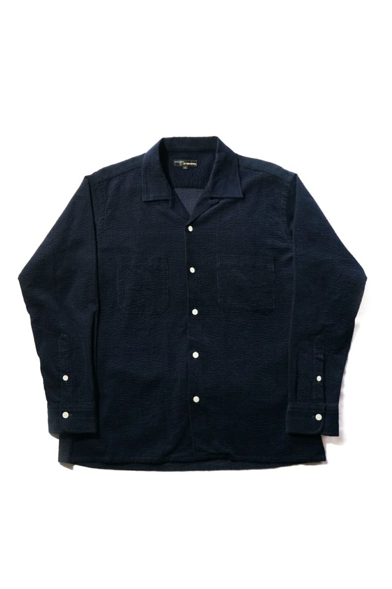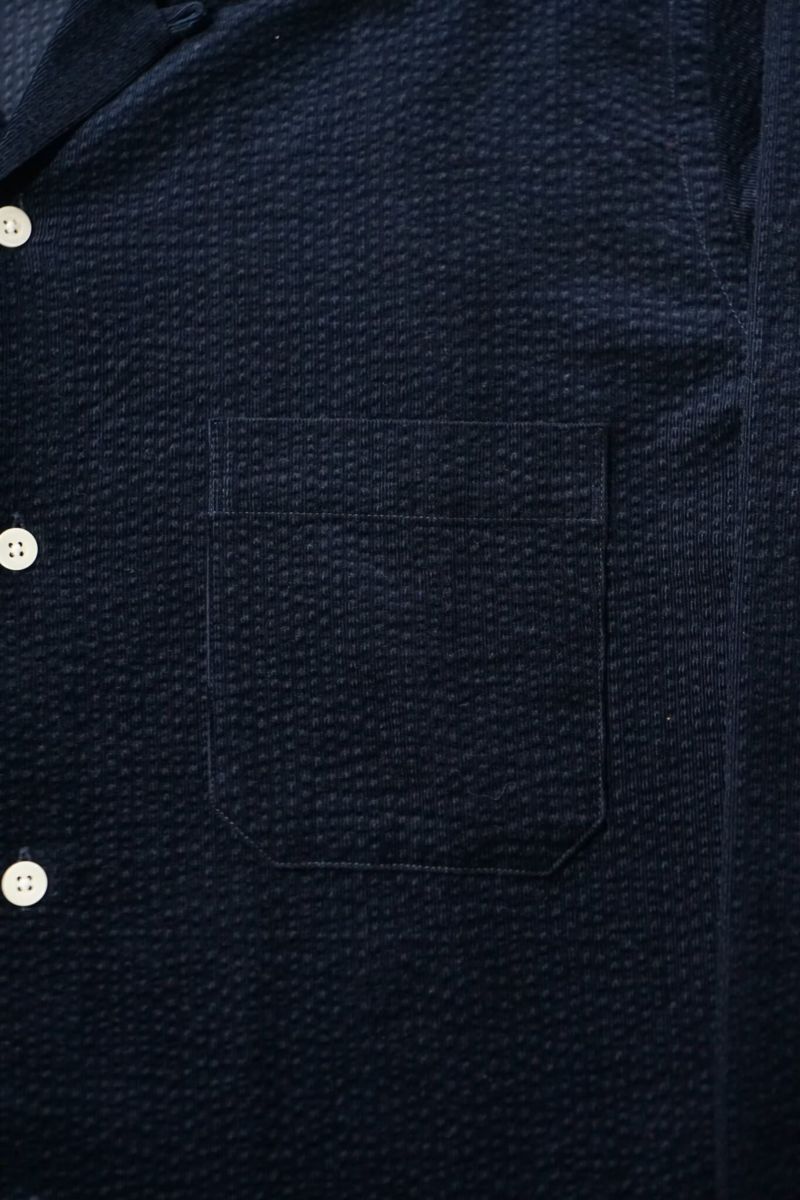 シアサッカーとコーデュロイを合わせたような、リップルコードという素材を使用。『Ripple(リップル)=さざ波』 という意味で、タテ方向に走る細畝のコーデュロイに対してヨコ方向にでている畝が特徴です。“MOJITO”の大定番アイテム”ABSHINTH SHIRT”ですがリップルコードの生地感で、また全然違った印象の一枚です。