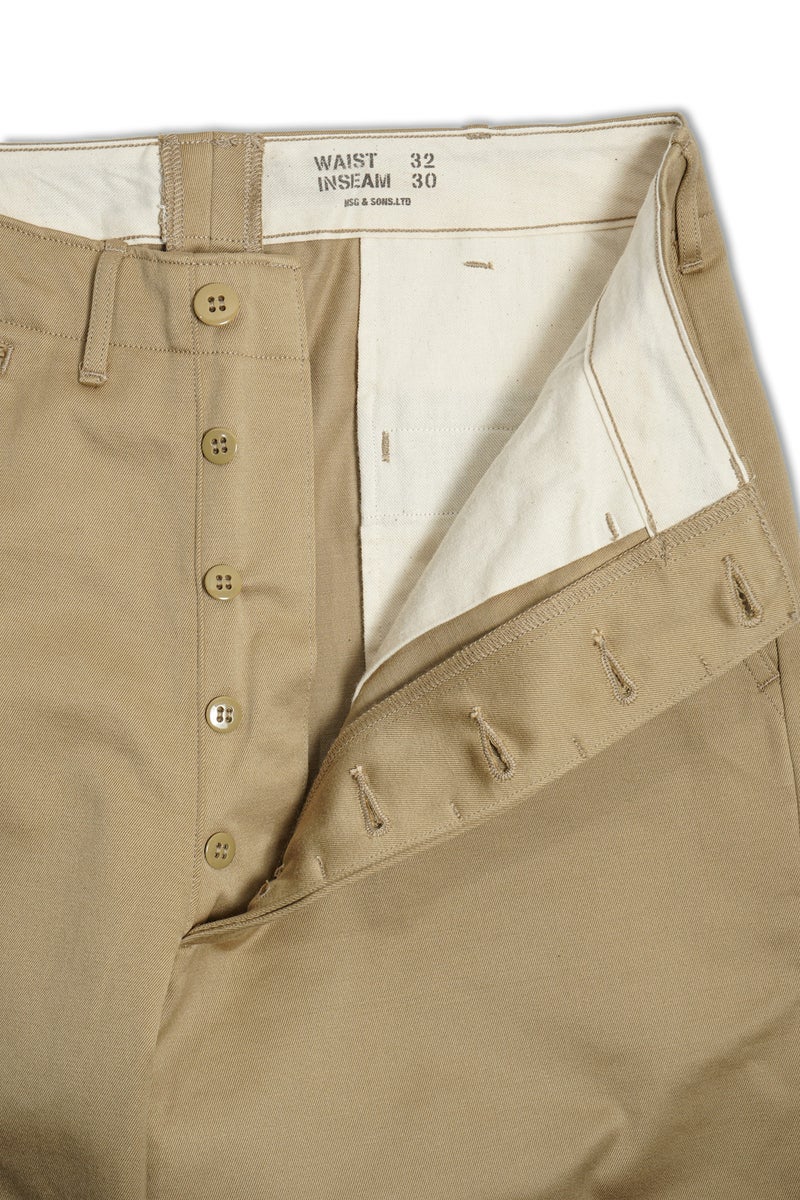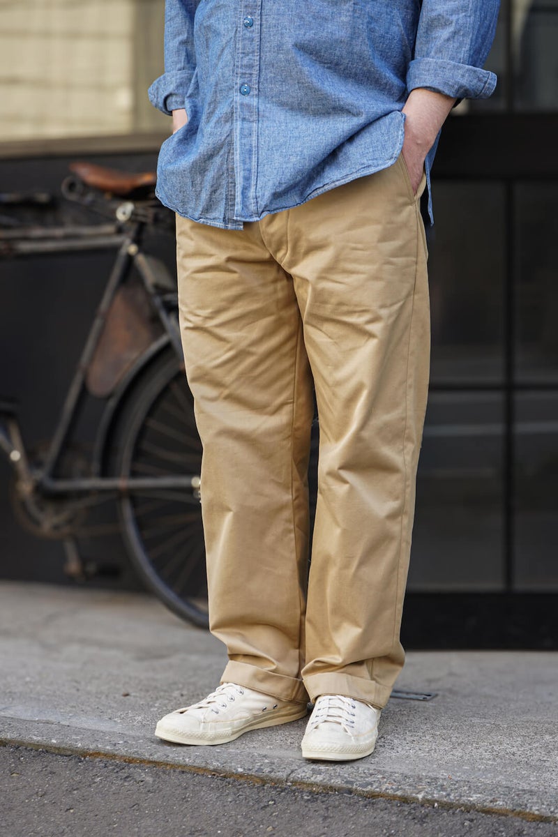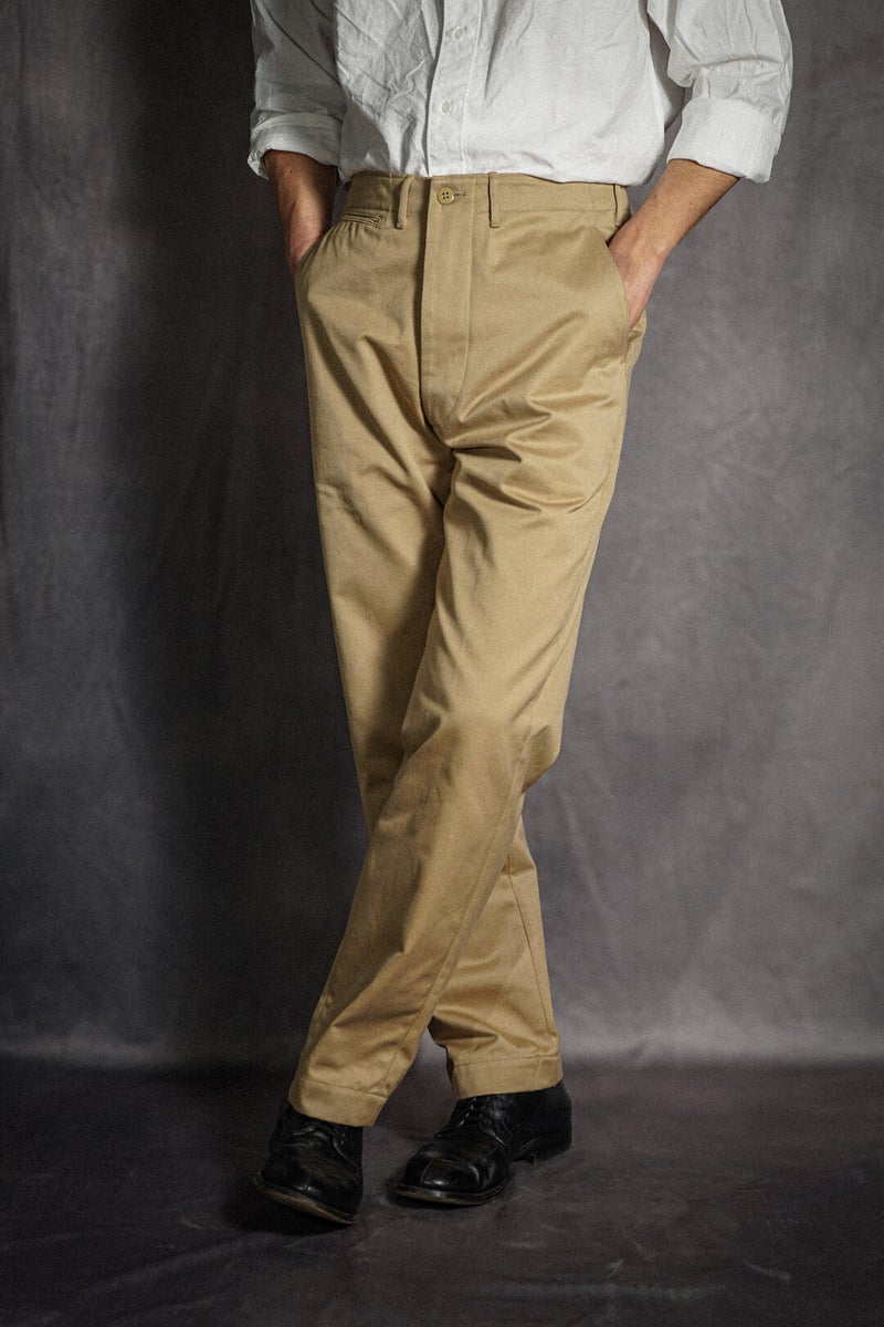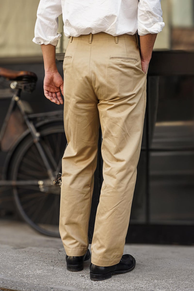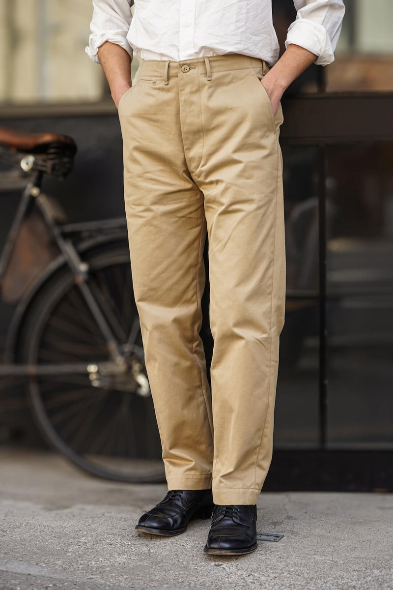 1940年代〜60年代、US ARMYのチノトラウザーズをベースに製作した、MSG & SONSのチノパンツ。
