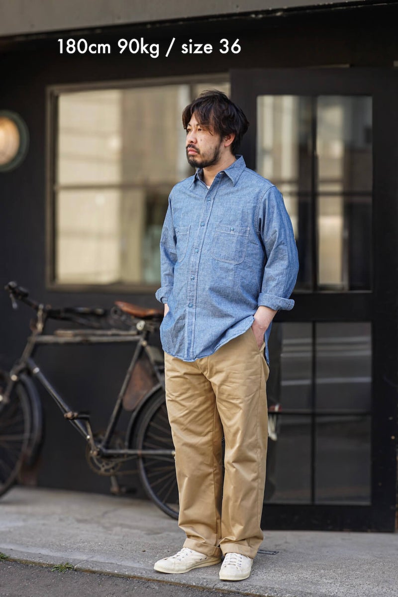 あえて毛羽立ちとドライな質感を持つ米綿を採用することで、当時のアメリカ製を感じさせる空気感を再現しています。 穿き込むほどに、生地は徐々に馴染み、自分だけの一本へと育っていきます。