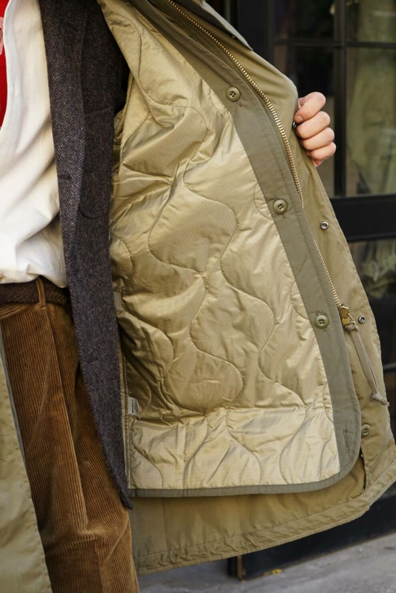 MSG & SONSのM1965 PARKAに取り付けることができる中綿入りのライナー。素材はアメリカ軍に採用されていたミルスペック仕様のリップストップ生地を使用しています。元々はライナー用として開発された生地ではなく、シェル用として開発された防水性、防風性に優れた生地をあえて使用。同サイズのシェルに完璧にフィットするよう製作しています。