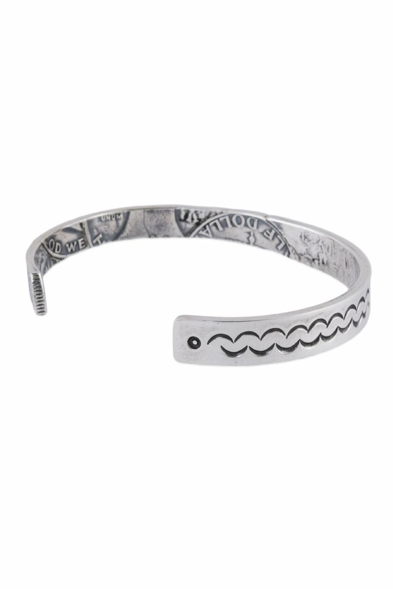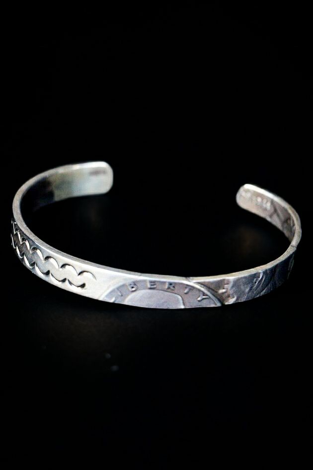 NORTH WORKSのアクセサリーに使われているのは、すべてアメリカの古い銀貨。 アクセサリーで使われる一般的なシルバー925と違い、銀の含有量は約90%と少ないので硬く、また素材としてムラがあるため加工はとても難しいと言われています。 そんな銀貨をくり抜いたり、熱を入れて叩いたり曲げたりしながら、ペンダントやリング、バングルなどあらゆるものに変えて行くのがNORTH WORKSの魅力です。