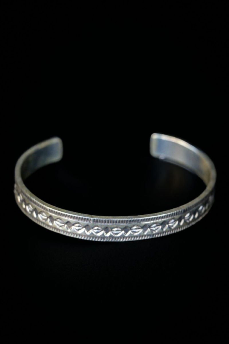 NORTH WORKSのアクセサリーに使われているのは、すべてアメリカの古い銀貨。 アクセサリーで使われる一般的なシルバー925と違い、銀の含有量は約90%と少ないので硬く、また素材としてムラがあるため加工はとても難しいと言われています。 そんな銀貨をくり抜いたり、熱を入れて叩いたり曲げたりしながら、ペンダントやリング、バングルなどあらゆるものに変えて行くのがNORTH WORKSの魅力です。