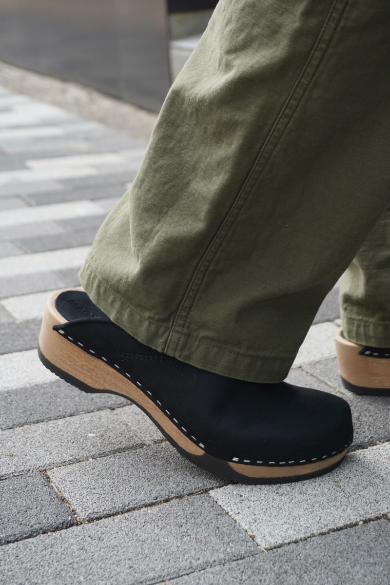 サボは一足の作成に1週間かかり、デンマークでハンドメイドされています。靴底は天然素材で通気性があり、地面を裸足で歩く感覚に近づける様に設計されています。また背筋を伸ばした姿勢になるため、背骨の負担を軽減し、腰痛にも効果的です。デンマークの医師、看護師、サービス業従事者の方々は、何時間でも立ったままでも負荷が少ないようにサボを愛用しています。しっかりとした木製の靴底は、足を圧迫することなく体のラインを整えてくれます。