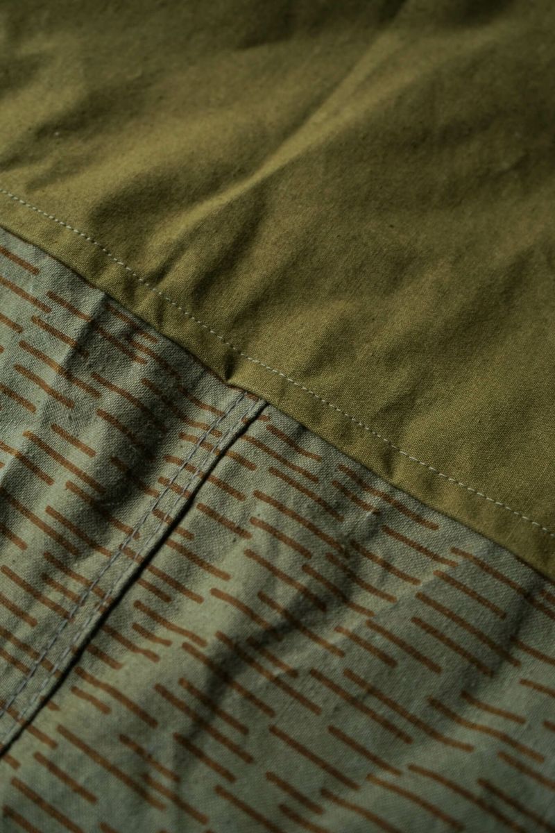 Pure Fabrications (ピュアファブリケーション)× ARCH ARCHが所有するヴィンテージアイテム10点を丁寧に解体し、オリジナルのディテールを活かしながらPure Fabricationsの手によってパズルのように”Re-imagined”(再構築)されたスペシャルピースを使用し構築。アート作品としての側面もありながら、フランス軍を代表するミリタリートラウザーズ、アメリカ海軍のスペシャルピースを使用しています。 その他にも貴重なアーカイブアイテムを現代の作品として蘇らせました。 空気を纏うフィットは性差なく着用いただけるだけでなく、ヴィンテージをモダンな印象で身につけることができます。 世界で問題になっている大量消費、環境破壊などの大きな問題をクリエイティブに解決することができ、それぞれ風合いの異なるヴィンテージを使用しているため同じものはこの世に一つと無いスペシャルなアイテムになっています。 <素材> COTTON 100% <生産国> MADE IN DENMARK 商品についてのブログはこちら Pure Fabrications × ARCH / Outerwear Tee with Collar PRICE : ¥143,000(税込み)
