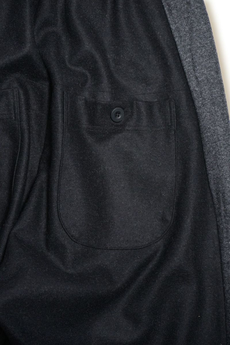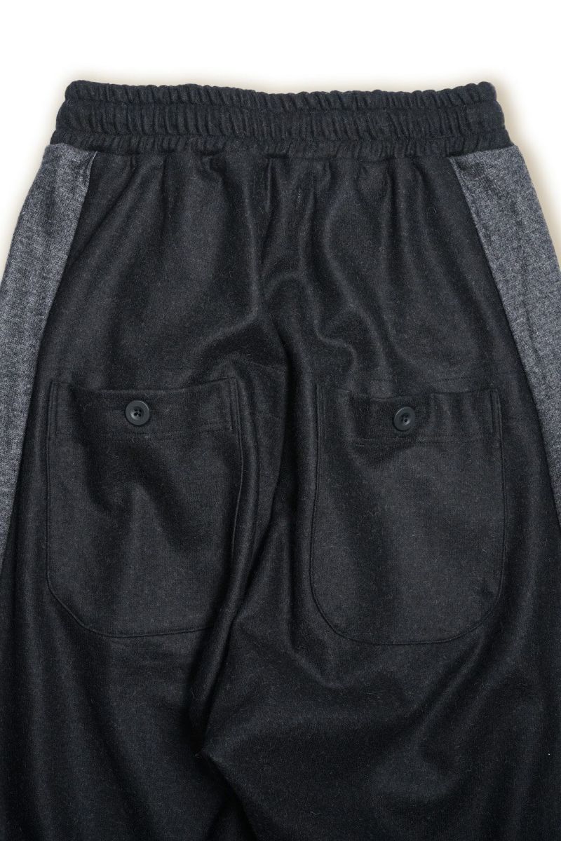 ウールナイロンのジャージ素材を使用したイージーパンツです。サルエルのような股上の深さに立体的な切り替えでリラックス感ある着用感。同素材のプルオーバーとセットでの着用もおすすめです。