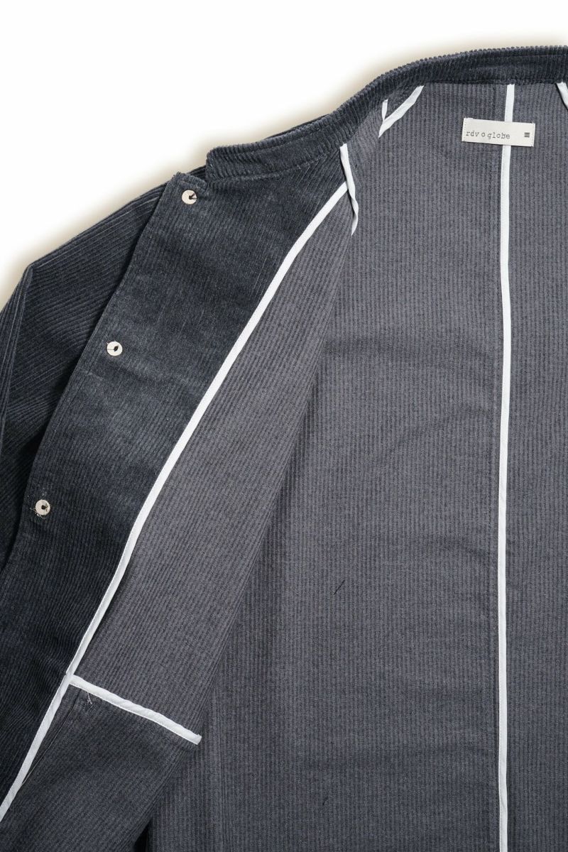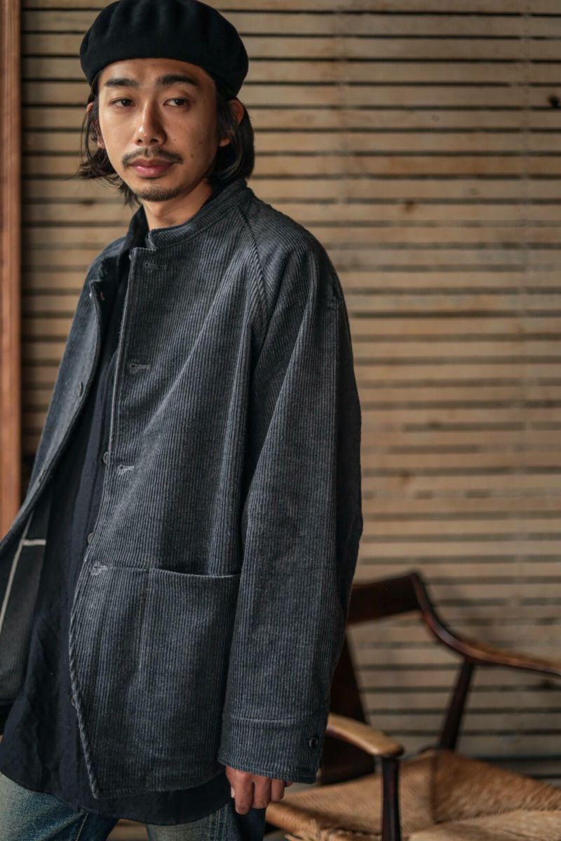 英国のワークジャケットを彷彿とさせるスタンドカラーに、19世紀後半のヴィクトリアン調を感じさせるフロントのラウンドカットという、ミックス感のあるデザインが特徴的なrdv o globeのジャケット"MORGAN VE."に8ウェルのストレッチコーデュロイを乗せたARCH別注の一着です。rdv o globeらしい、柔らかな雰囲気を醸し出すゆったりとしたシルエットが魅力的。ラグランスリーブの袖付けもこの絶妙なシルエットを生み出しているディテールの一つです。ストレッチ性も有るためストレスなく着用できるのも特徴です。
