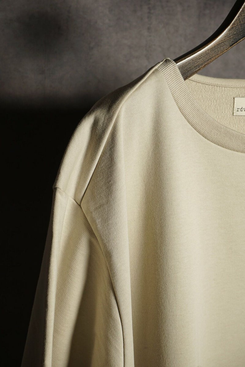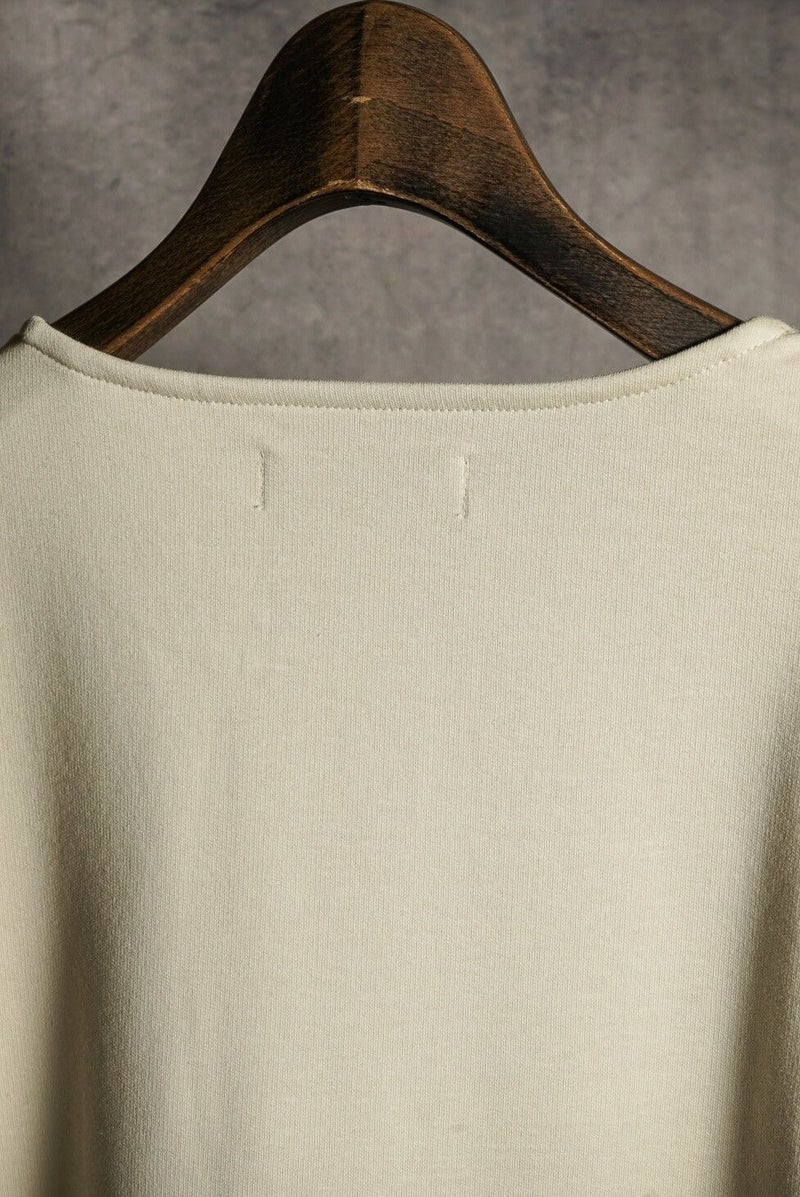 シャリ感のあるコットン糸を使用しハイゲージ裏毛に編み立てたスウェットTシャツ。ドライタッチな肌触りが特徴です。着込むほどに風合いの変化も楽しんでいただけます。