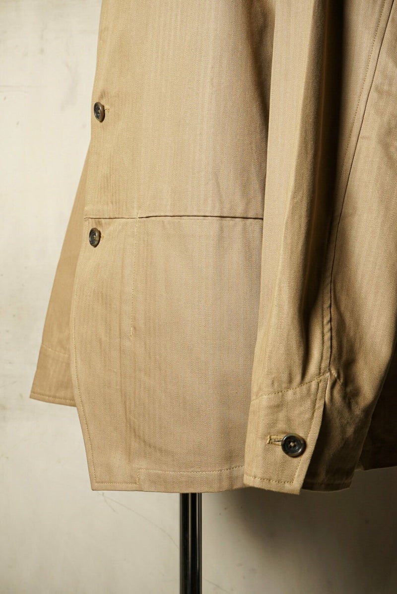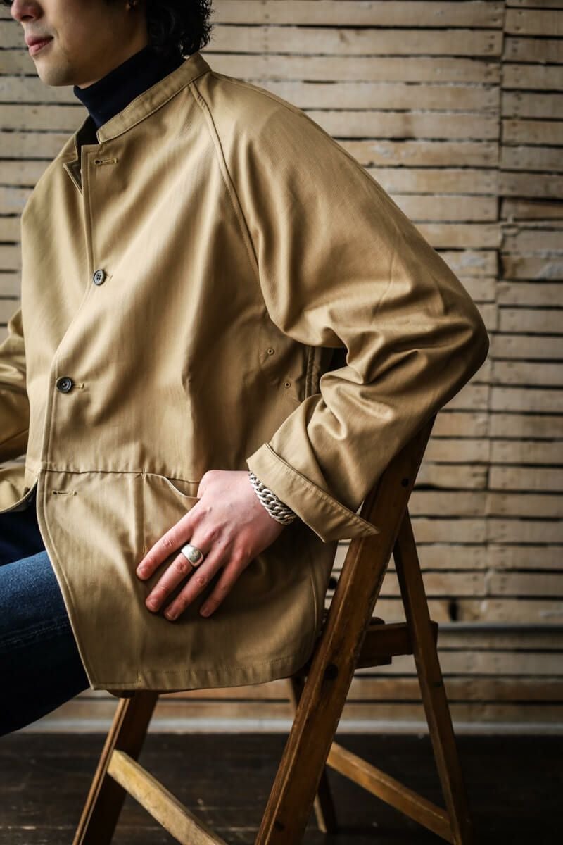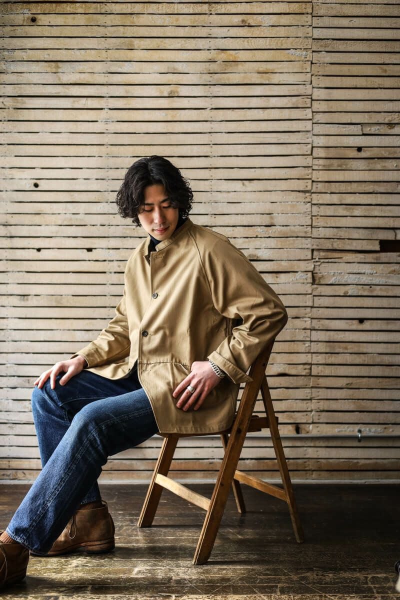 rdv o globe(ランデヴーオーグローブ) ヨーロッパのワークジャケットと、アメリカのカバーオールをミックスさせたようなディテールが特徴的な"MORGAN VE."にヘリンボーンツイル生地を乗せたARCH別注の一着です。rdv o globeらしい、柔らかなゆったりとしたシルエットが魅力的。ラグランスリーブの袖付けもこの絶妙なシルエットを生み出しているディテールの一つでしょう。 <素材> COTTON 100% <生産国> MADE IN JAPAN rdv o globe / MORGAN VE. - ARCH EXCLUSIVE PRICE : ¥58,300(税込み)