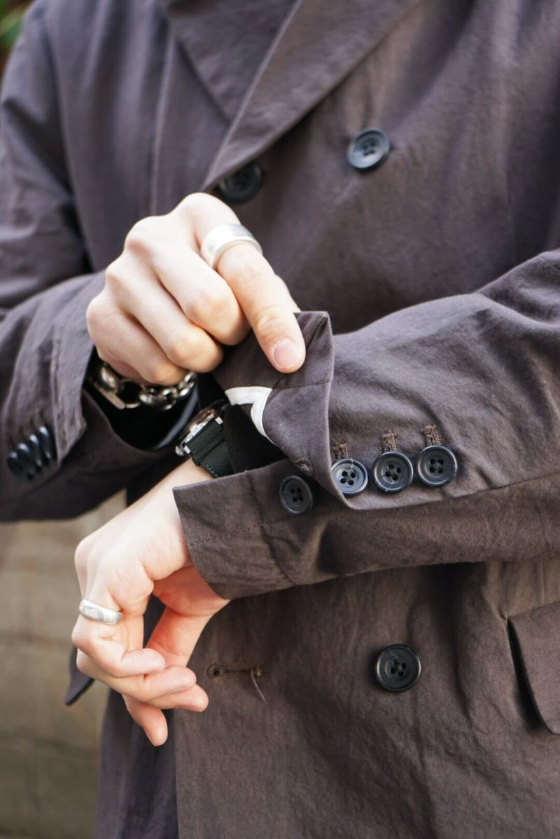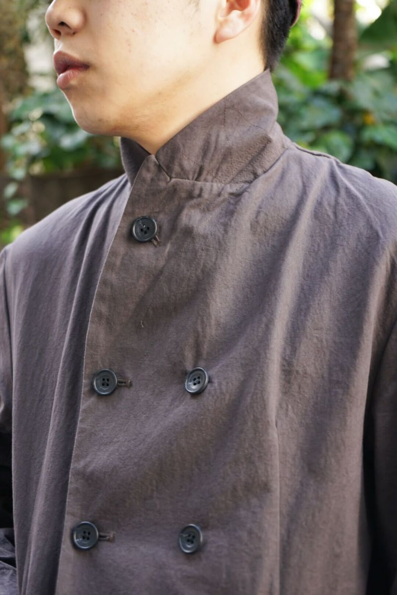 ヴィクトリアンスタイルにミリタリー、ワークといったディテールを加え、いまの時代に合ったシルエットをつくり上げ、素材、縫製から全てジャパンメイドに仕上げている。