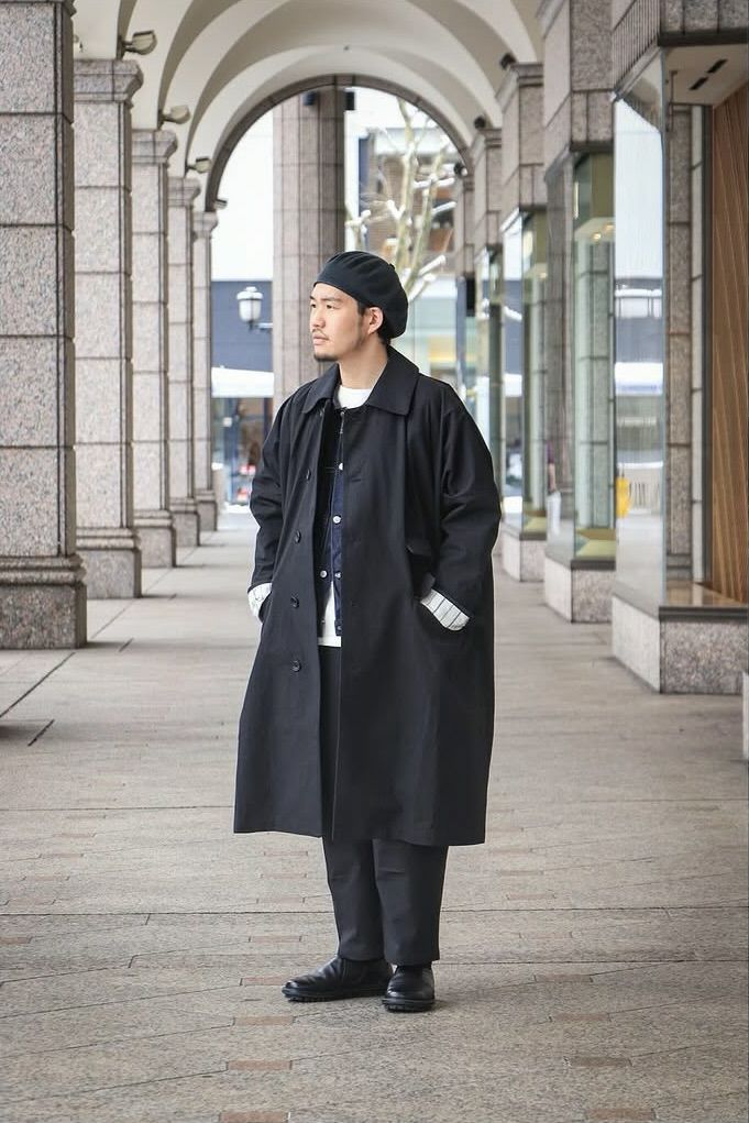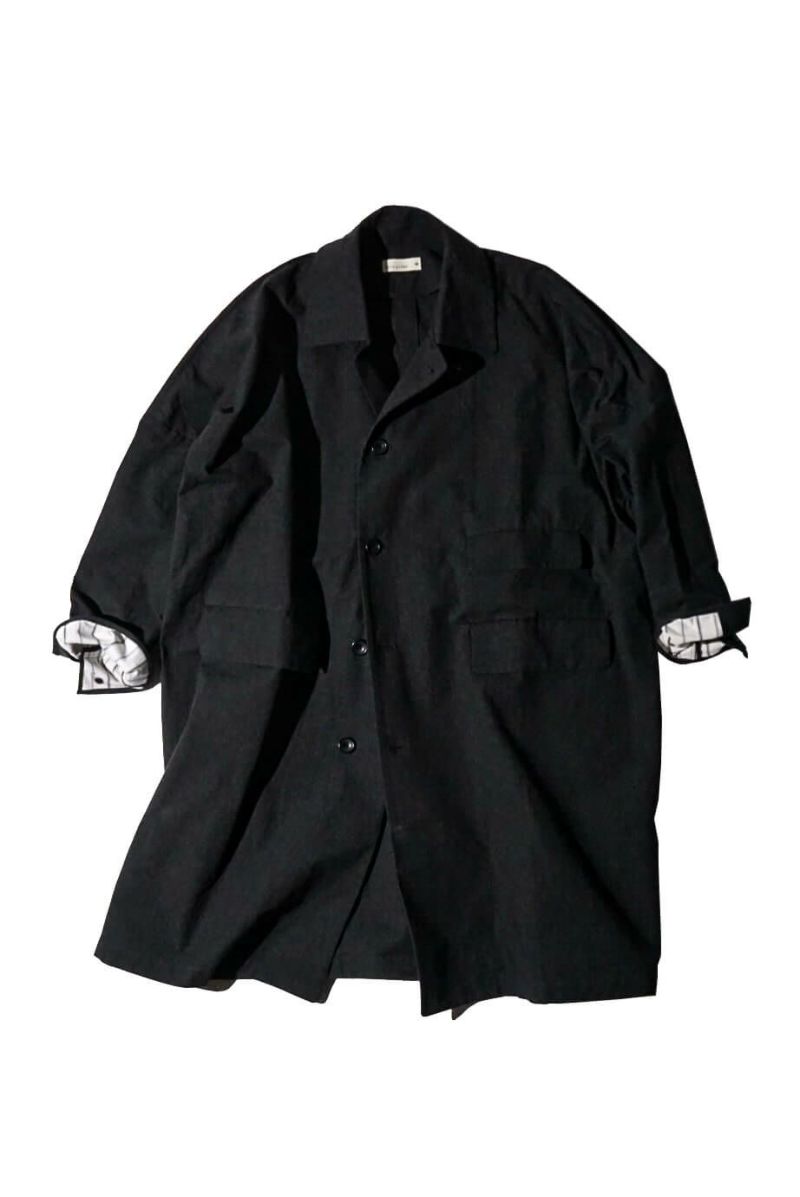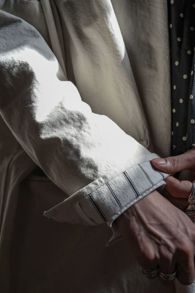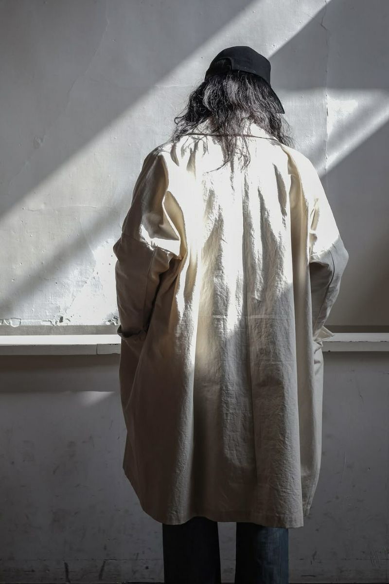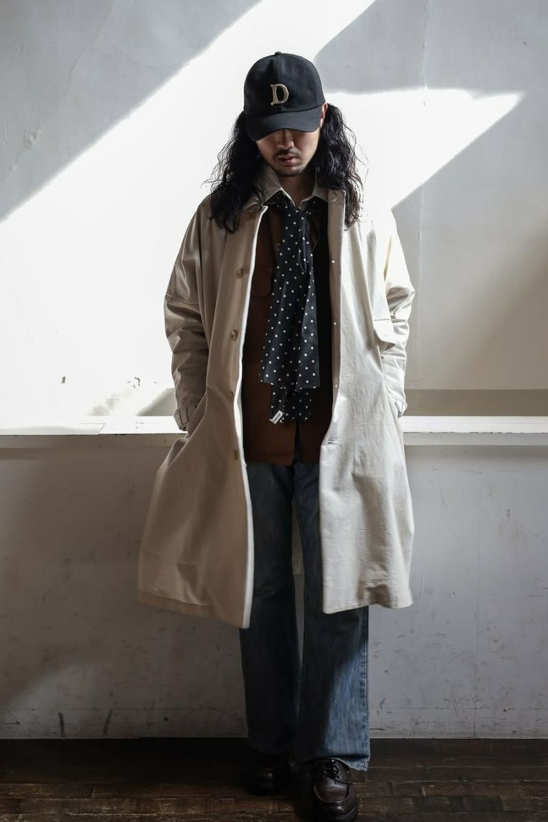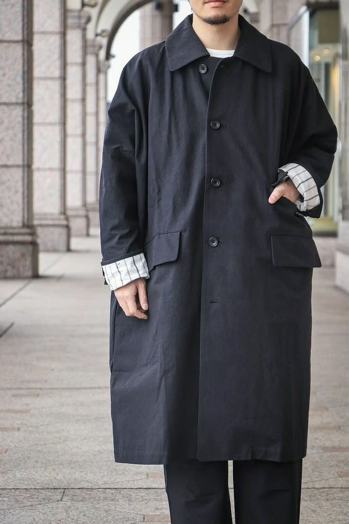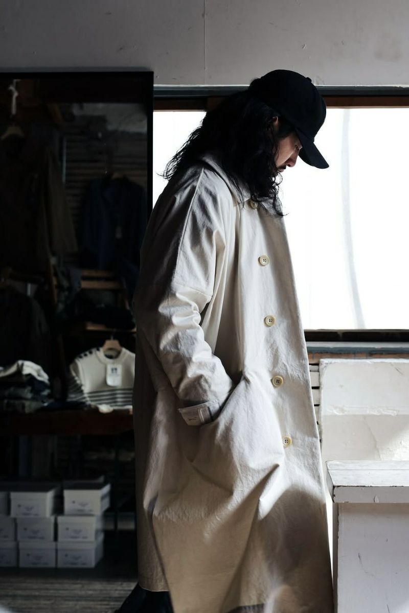 rdv o globeからBRUCE MA.をリリース。素材には,コットンのドビークロスに後染めを施しております天日干しにより自然なシワ感となりドライな手触りが特徴です。肩幅、身幅ともにゆとりを持たせたカジュアルなコートになります、チェンジポケットや袖裏のストライプ生地(リサイクルコットンを使用したムラ感のある素材)を使用しアレンジを効かせております。ぜひお試しください。
