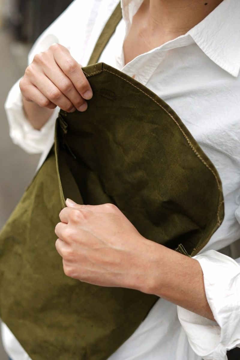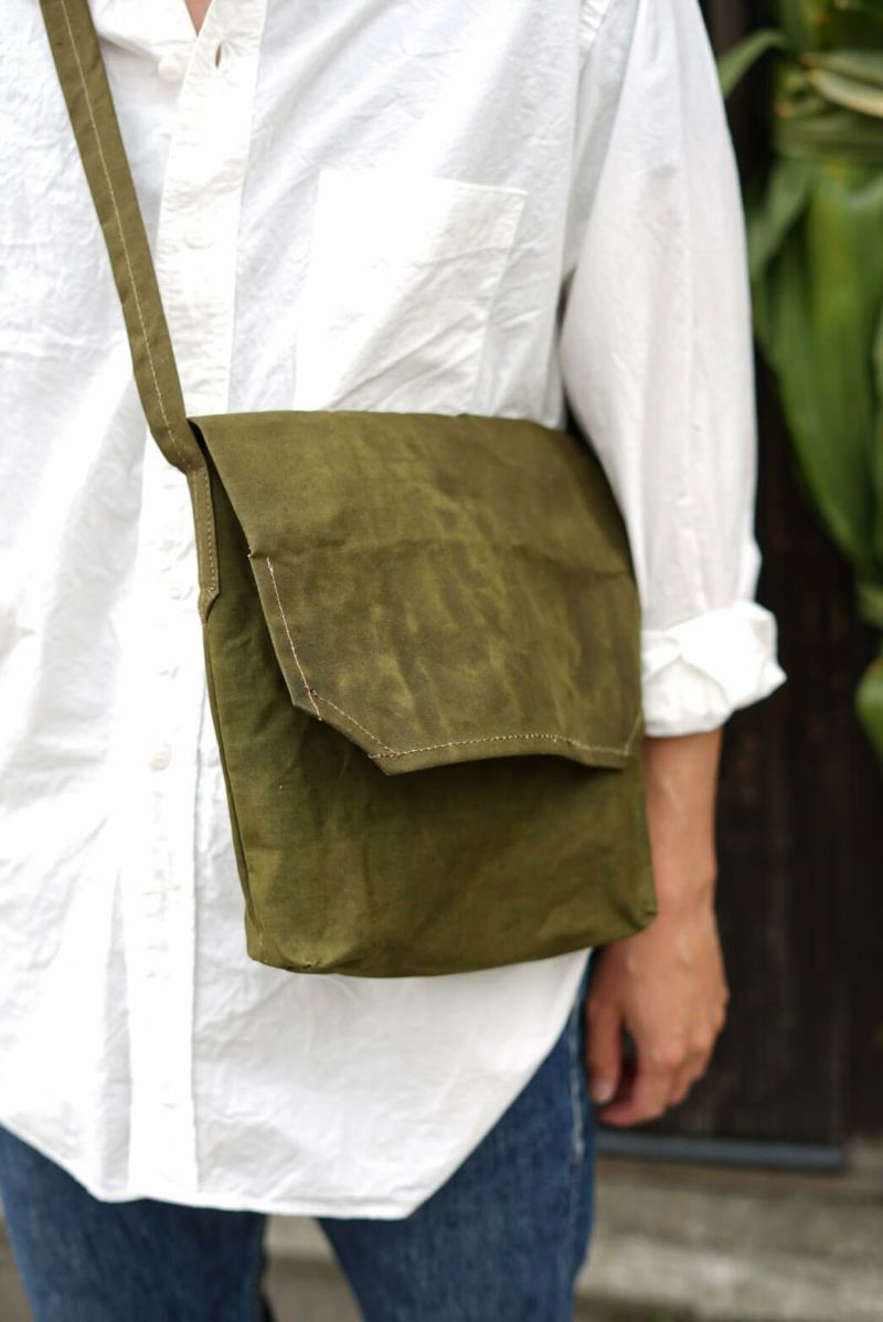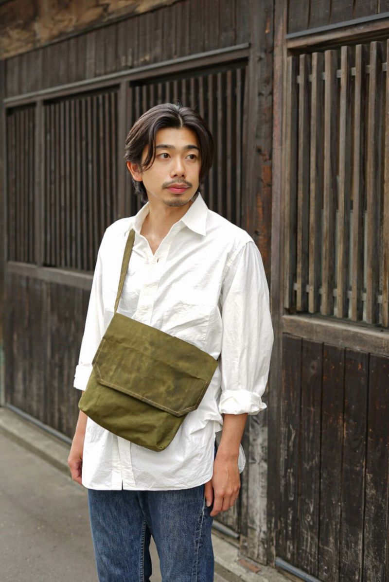 RECONDITIONED SERVICE CLOTHING (リコンディションド サービス クロージング) 第?次世界?戦後の英国で1940年代後半から1950年代にかけて実在したレーベルを実名復刻させたRECONDITIONED SERVICE CLOTHING(リコンディションド サービス クロージング)のミリタリーバッグ。 1940年代、西ドイツ軍に支給されていたテント生地を裁断しロウ引き加工。1930年代フランス軍に支給されていたミリタリーバッグをベースに”RECONDITIONED”されたアイテムです。 ショルダーストラップにはあえてバックル等の付属品を使用しておらず、好きな位置を結んで長さを調整できるようになっているのも特徴。ロウ引き加工された生地は使い込むことによるエイジングも非常に楽しみです。 ※ヴィンテージの生地を使用しているため、風合いやコンディションが一点一点異なります。シミや汚れが見られる場合がございますが、ご理解のうえご購入ください。 RECONDITIONED SERVICE CLOTHING / MILITARY BAG 1940'S W.GERMANY TENT CLOTH PRICE : ¥22,000(税込み) 品番 : 959001