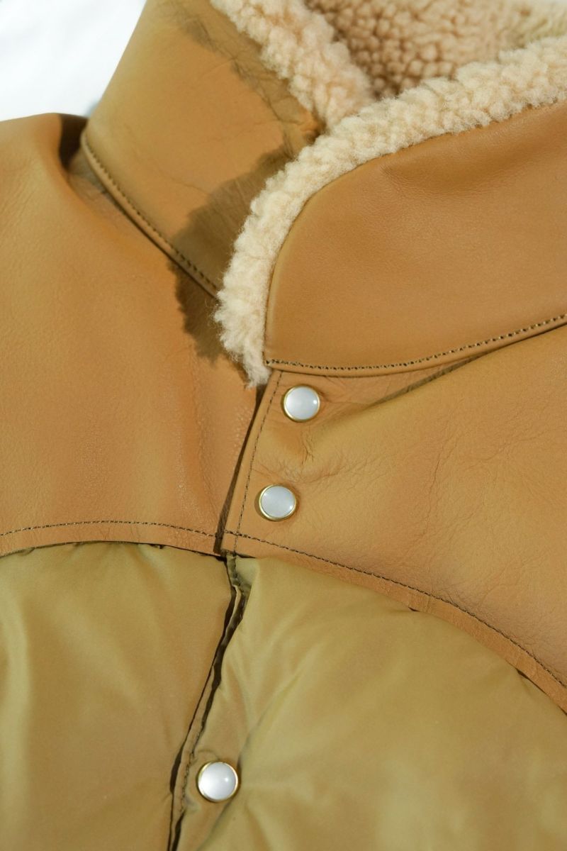 Rocky Mountain Featherbed 1960年代後半、Rocky Mountain Featherbed(ロッキーマウンテンフェザーベッド、以下RMFB)は、アメリカ・ワイオミング州(俗称カウボーイ・ステイツ)のジャクソンホールで産声を上げる。 ネイティブアメリカンの英知が生み出したレザーケープを参考に、継ぎ目の無い一枚革を使ったウエスタンヨークをアイコンとしたカウボーイ向けのウェアが完成。 それが羽毛布団(FEATHERBED)のような防寒性、保温性を保証するダウンベストであった。 残念ながら1980年代後半にブランドは消滅してしまうが、復活。 一枚断ちのレザーヨーク、天然ムートンを使用した襟など、確かな価値を受け継ぎつつ、さらに“現代”というエッセンスを加え、他に類を見ない贅沢な製品を生み出しています。 そして今なお、世代を超えて世界中の人々を魅了し続けています。