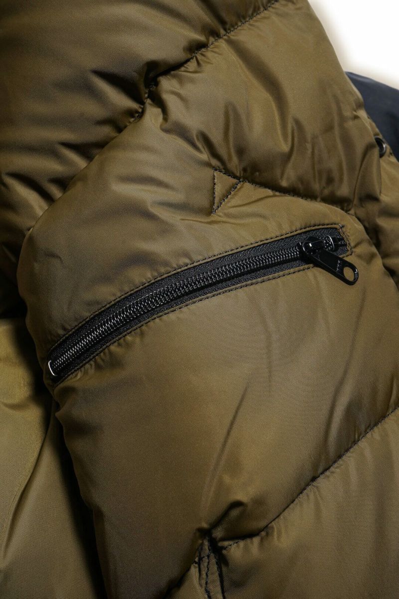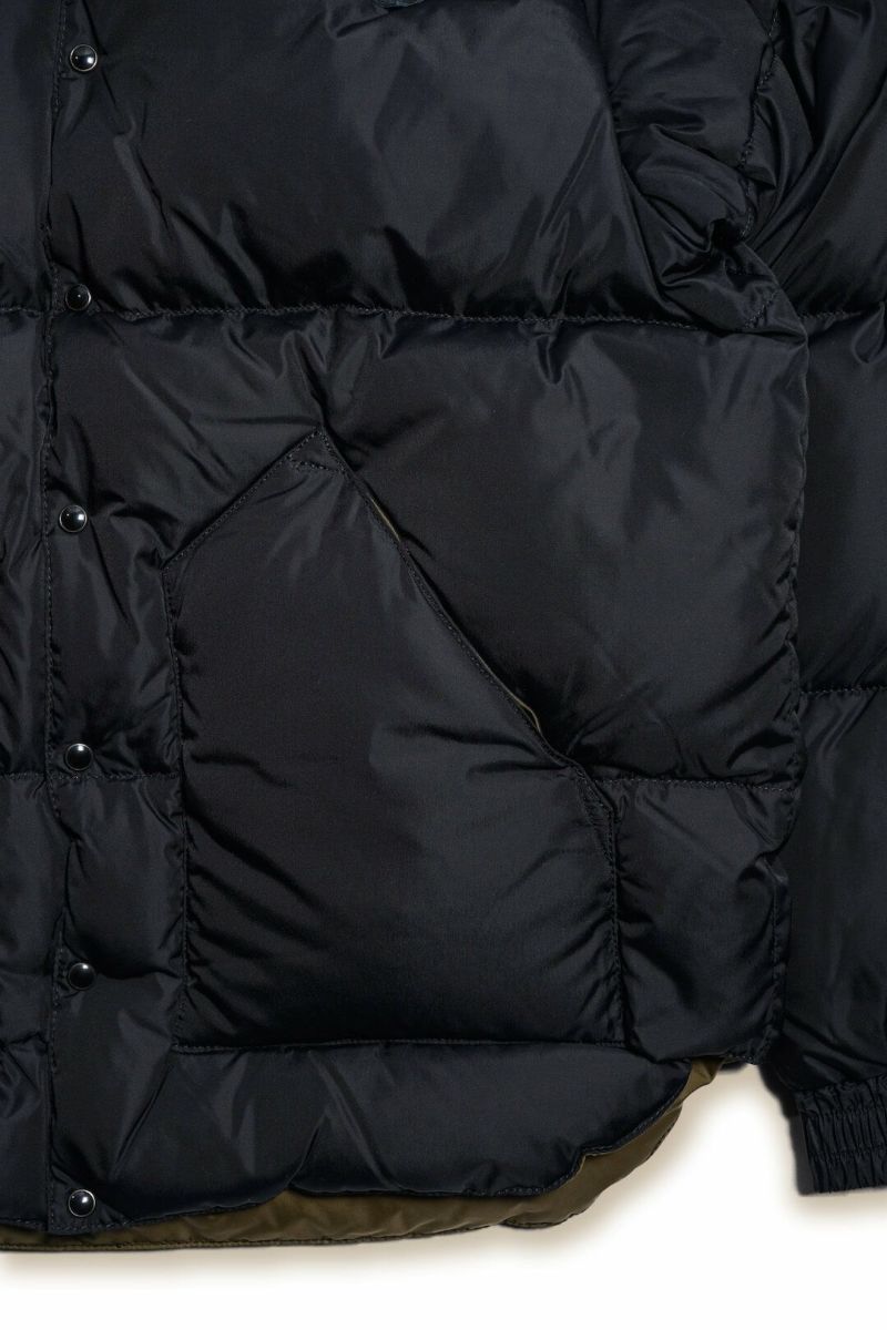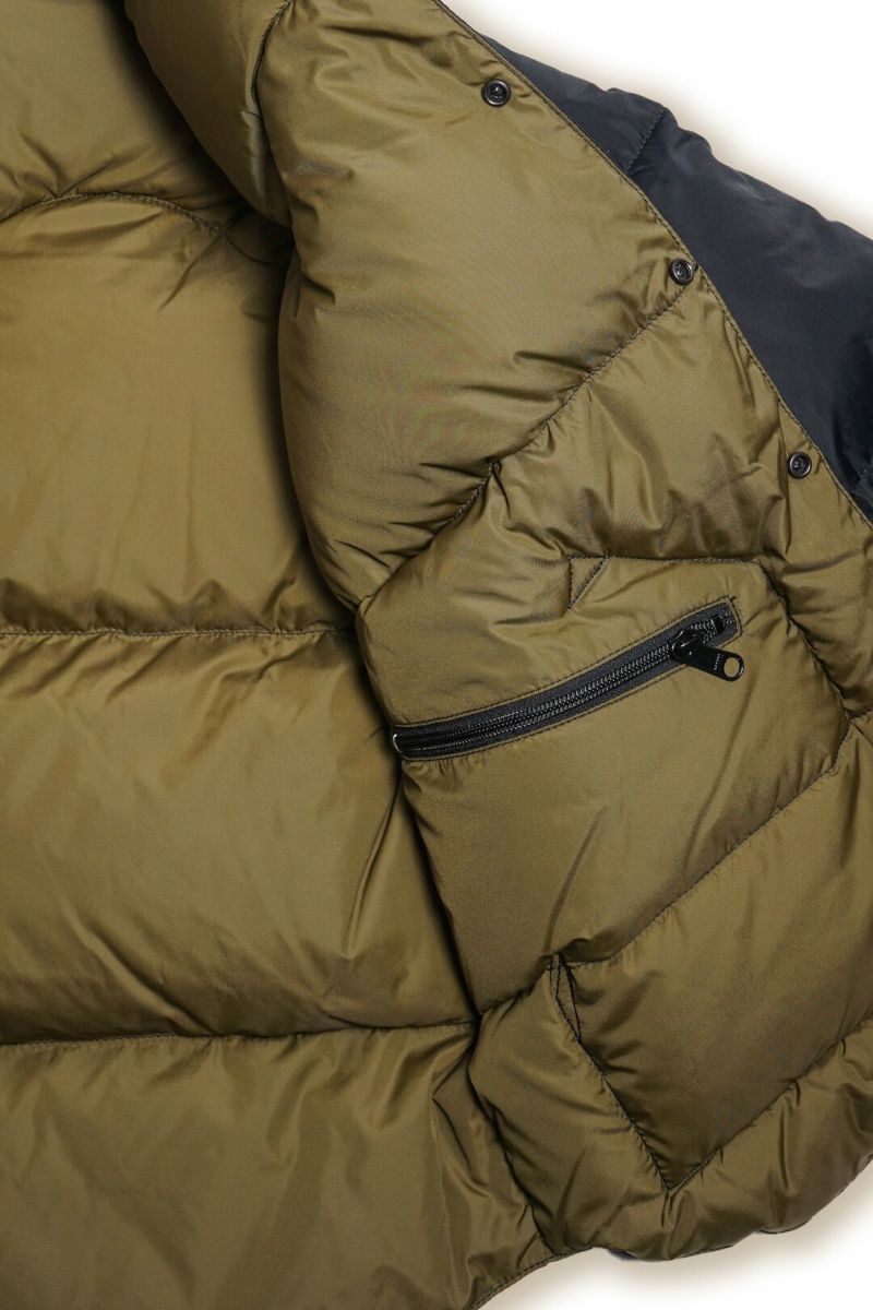 表地・裏地にはRocky Mountain Featherbed復活時に開発した70デニールのオリジナル・ナイロンタフタを使用。ヴィンテージを研究し忠実に復刻したこのナイロンタフタは、ダウンパックの機能を持ち合わせており、この3層構造により、軽さ、保温力が格段にUP。