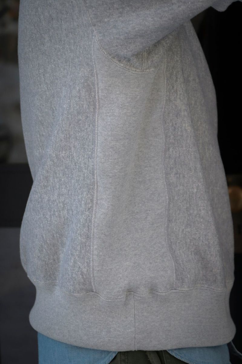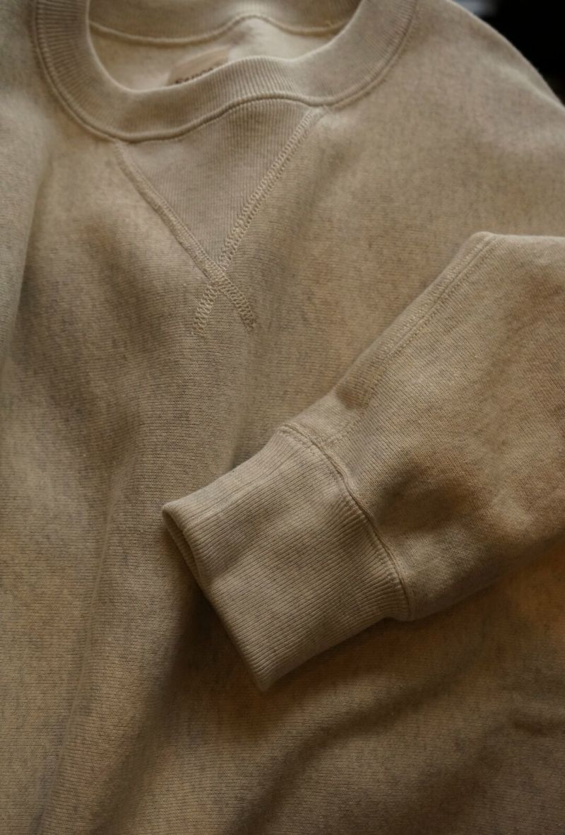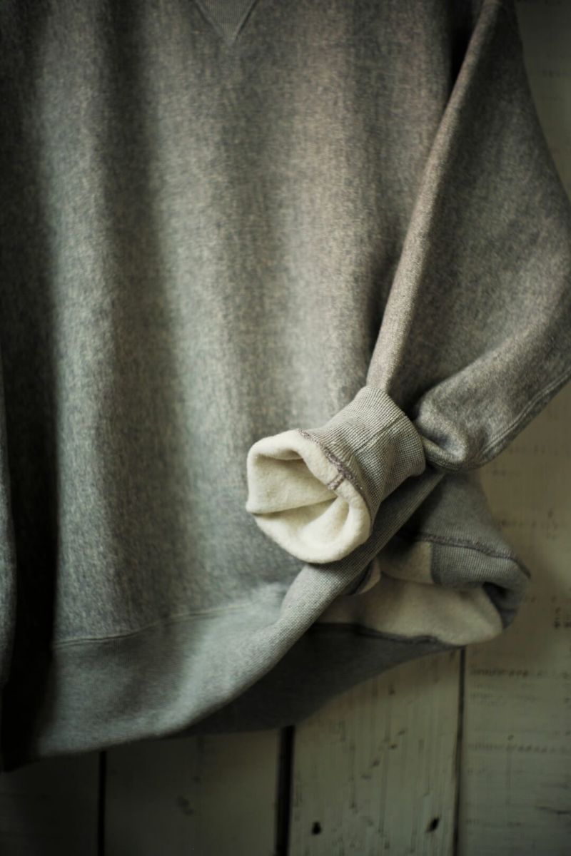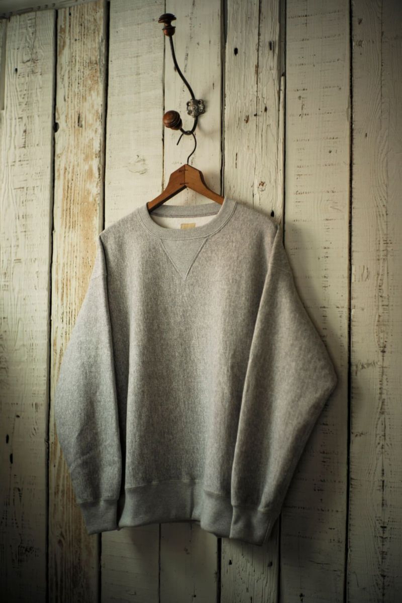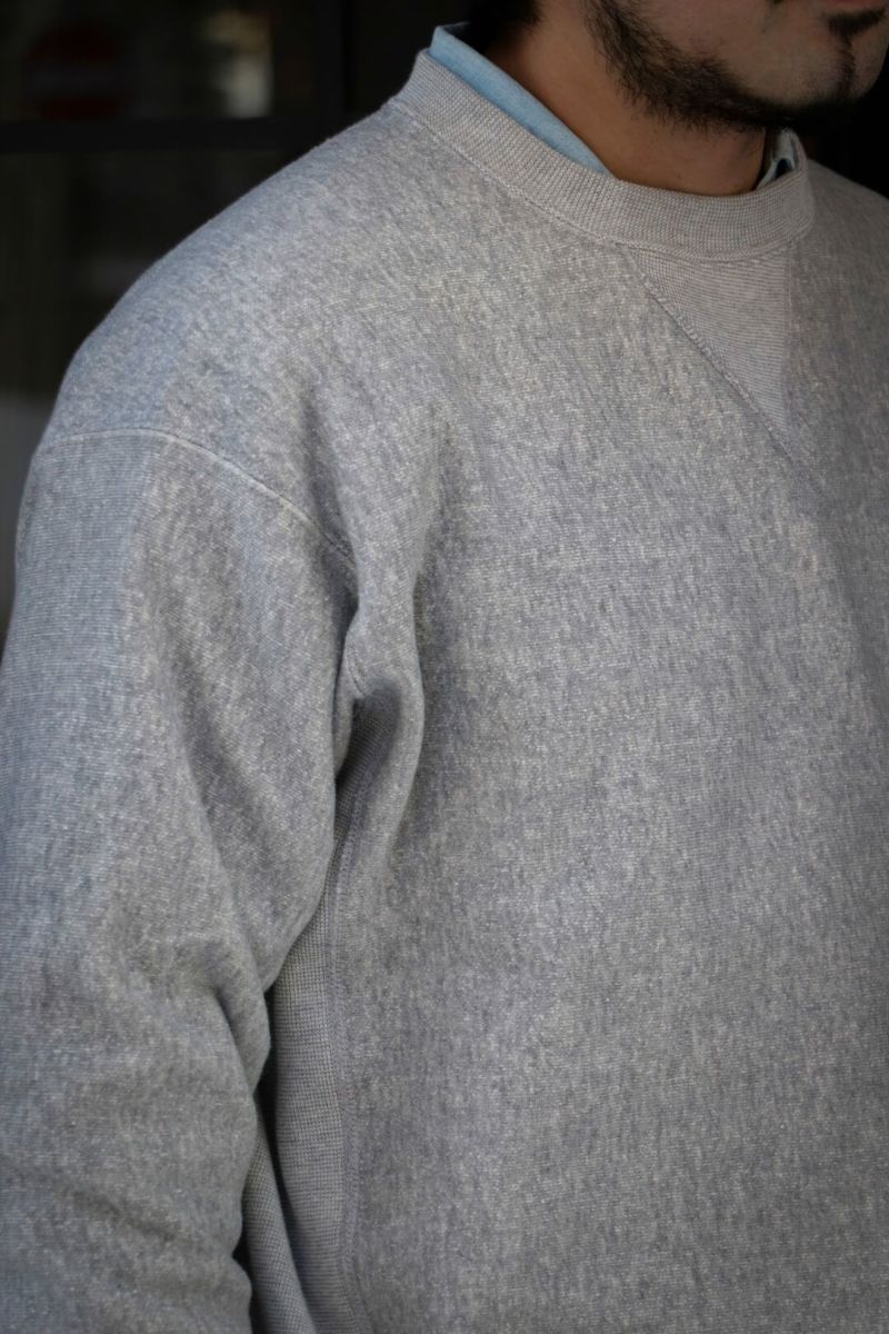 ARCH別注によるSancaの"CREW SWEAT SHIRT - ARCH EXCLUSIVE MODEL -" ヴィンテージのリバースタイプスウェットを元に、前V、身幅やディテールをクラシックな仕様に仕上げた、アメリカの古き良きスウェットをベースに製作された一枚。 生地は、丸編地の産地である和歌山県に現存する数少ない旧式の吊り編機によって編み立てています。糸に余計な負担がかからなく、また生地も強制的に巻きる事なく自然に溜まっていきます。洗い込むほどに実感できる手編み感覚の豊かな風合いがこの素材の魅力です。 カラーは、ベーシックなグレーとオートミールの2色展開です。 COTTON 100% MADE IN JAPAN ※こちらの商品はブログでも詳しくご紹介しております。 https://archstyle.tv/yonemuraya/ Sanca / CREW SWEAT SHIRT - ARCH EXCLUSIVE MODEL - Price ¥20,900(税込)