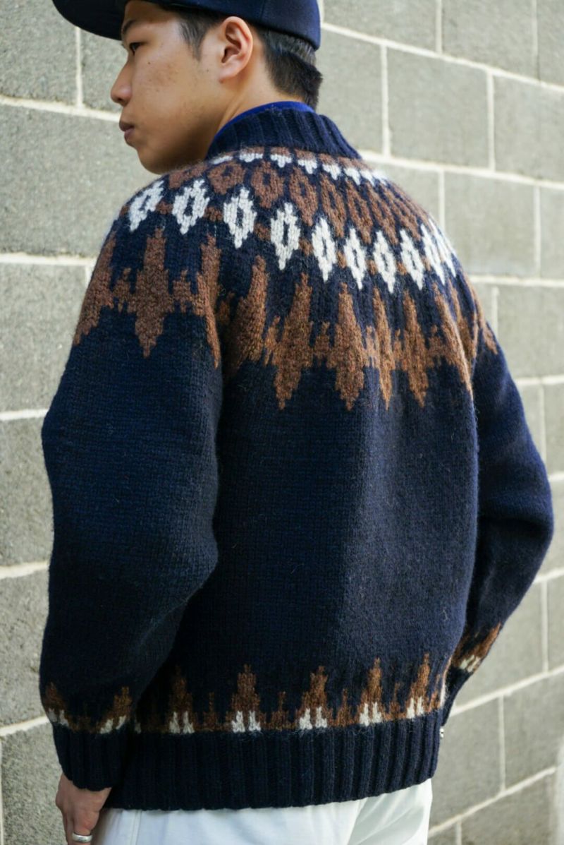 Slopeslow 手編みの柄物、求心状に輪で柄を編みこんでいく”Lopi sweater”(ロピーセーター)、ノルディック(北欧の)という意味にはスウェーデン、ノルウェーなど他の国々も含まれギザギザした幾何模様を求心柄に編みこんでいくこの手編みのセーターは、アイスランドの伝統的なもので“Lopi sweater”と呼ばれていますが、一般的には“ノルディックセーター”とも呼ばれてもいます。 ウール(シェットランドウール) : 57% ヤク 43% ファスナー引手 牛革 Slopeslow / スロープスロウ 時を超えて愛用され続けるワークウェアのように、経年変化を経ても、長く愛用される、タフで上質、オーセンティックなニットウェア。 多くのワークウェアがそうであるように、容姿や性別にはこだわらず、それぞれの好みに合わせて、自由にサイズやスタイルを選択。 シェフが一皿の料理を創作するように、思い描くイメージに合わせて、糸を作ることから、形にし、仕上げ方に至るまで、手間を惜しまず、最善の選択を積み重ねる。 それが、わたしたちが何よりも大切にしていること。時を経ても、末長く愛用される一着でありますように。 ※こちらの商品はブログでも詳しくご紹介しております。 https://archstyle.tv/minamiaoyama/ Slopeslow / LOPI SWEATER ZIP JACKET Price ¥176,000(税込)
