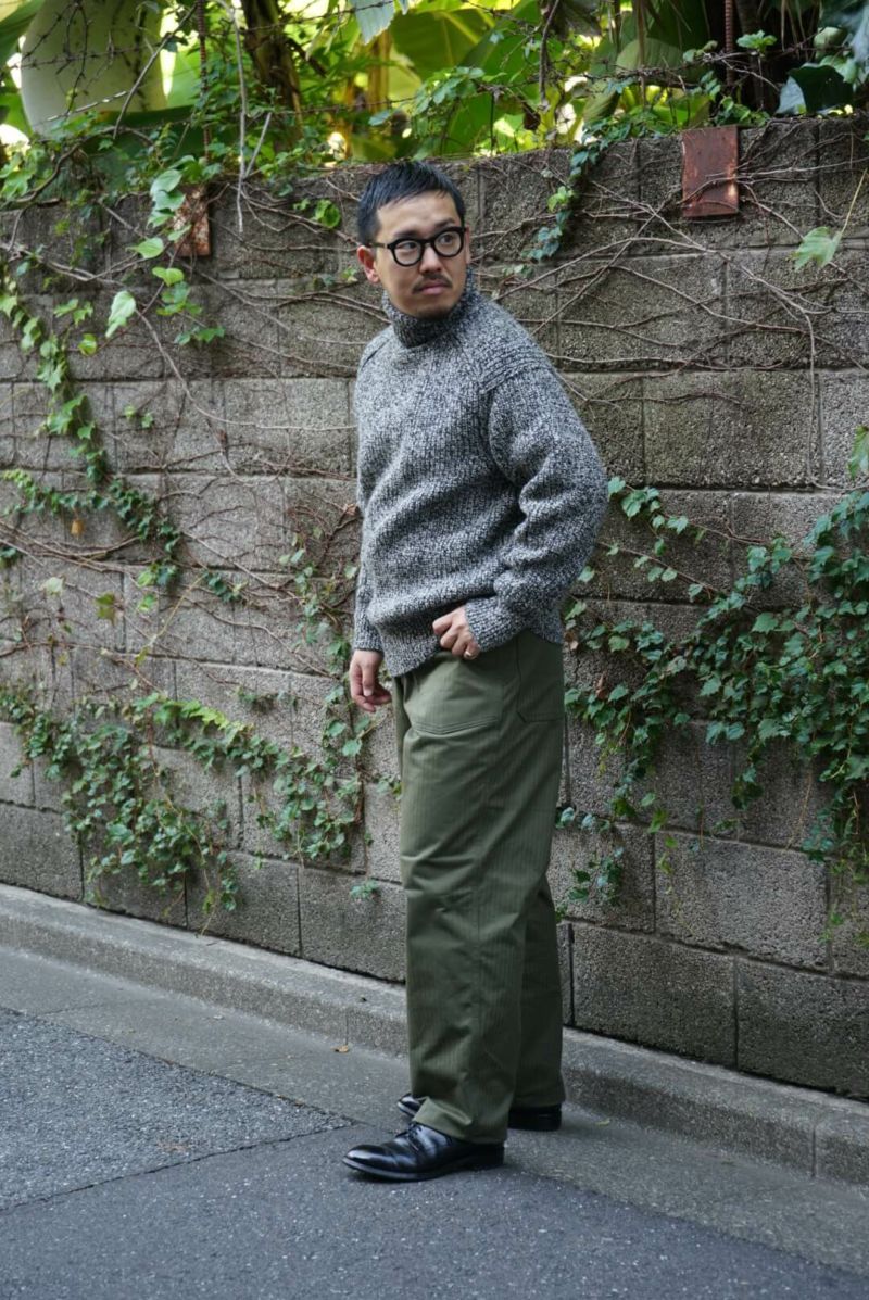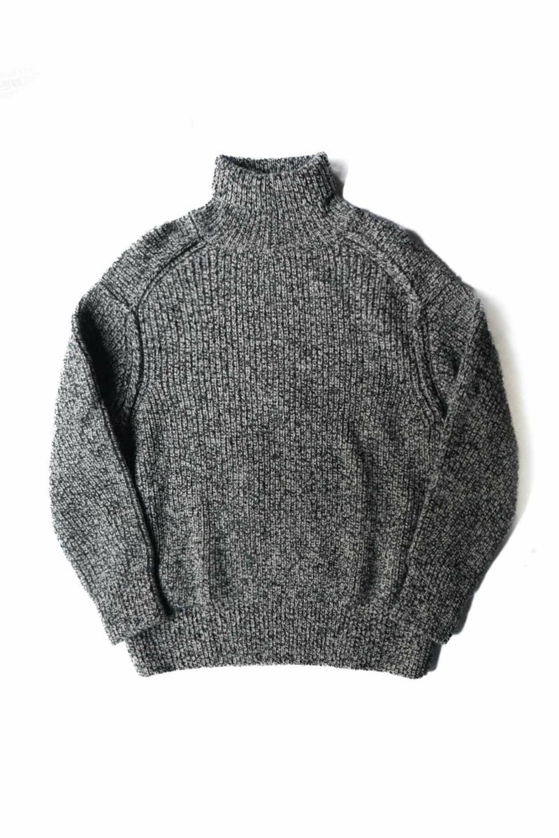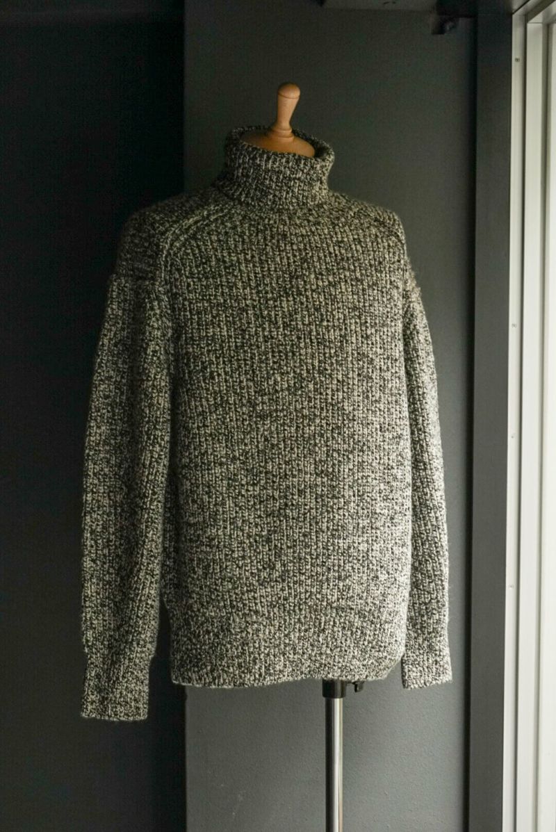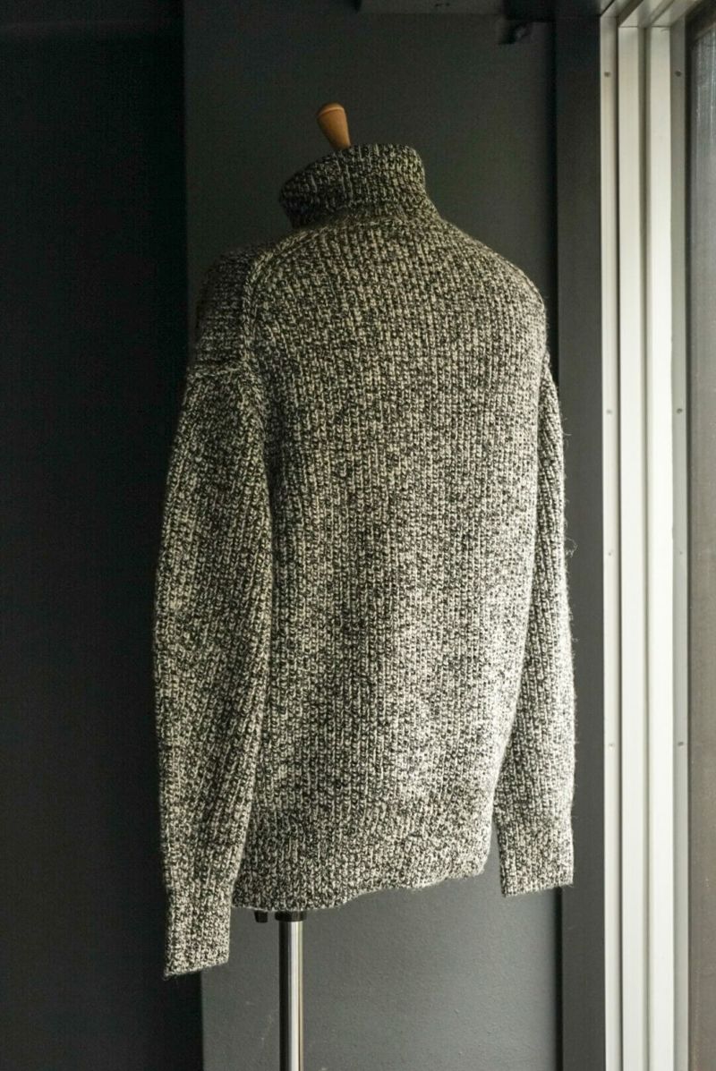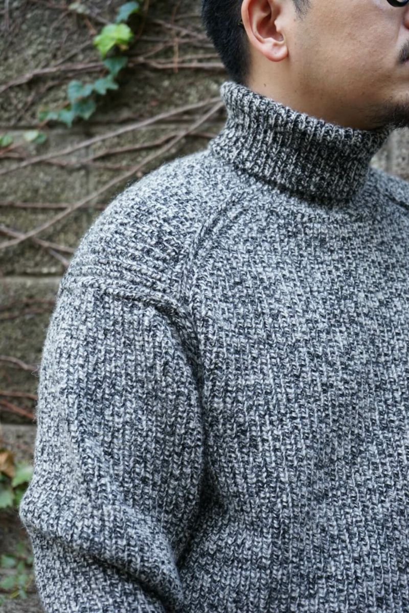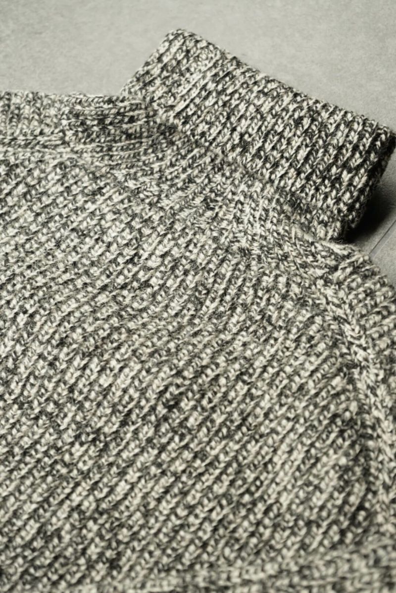 Slopeslow 手で編み機のキャリアを動かす「手横編み機」で度目をゆるゆるに編み、縮絨(洗いの工程)でぎゅっと圧縮して縮めて作られています。 ヤクの毛とシェットランドウールを使用しており、ニット特有のチクチク感が一切感じられないほどのソフトな肌あたり。 型周りはボリュームのある生地でも自然に馴染むように設計されており、デザインとしても魅力的です。 ボリューミーな見た目とは裏腹に、ミドルゲージのセーターよりも軽いのではないかと思うほどの着心地が病みつきになります。 シェットランドウール : 57% ヤク: 43% ※こちらの商品はブログでも詳しくご紹介しております。 https://archstyle.tv/minamiaoyama/ Slopeslow / スロープスロウ 時を超えて愛用され続けるワークウェアのように、経年変化を経ても、長く愛用される、タフで上質、オーセンティックなニットウェア。 多くのワークウェアがそうであるように、容姿や性別にはこだわらず、それぞれの好みに合わせて、自由にサイズやスタイルを選択。 シェフが一皿の料理を創作するように、思い描くイメージに合わせて、糸を作ることから、形にし、仕上げ方に至るまで、手間を惜しまず、最善の選択を積み重ねる。 それが、わたしたちが何よりも大切にしていること。時を経ても、末長く愛用される一着でありますように。 Slopeslow / TURTLE NECK SWEATER Price ¥42,900(税込)