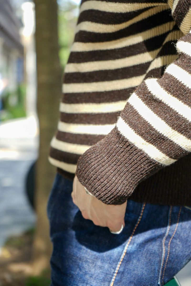 継ぎ目の部分など拘りを感じるディテールも勿論、手横で編まれた柔らかい着心地が特徴です。