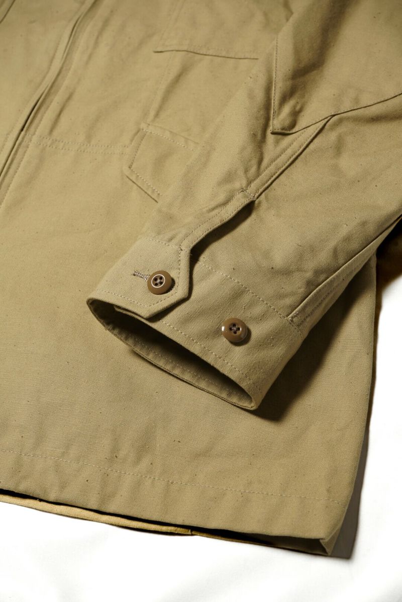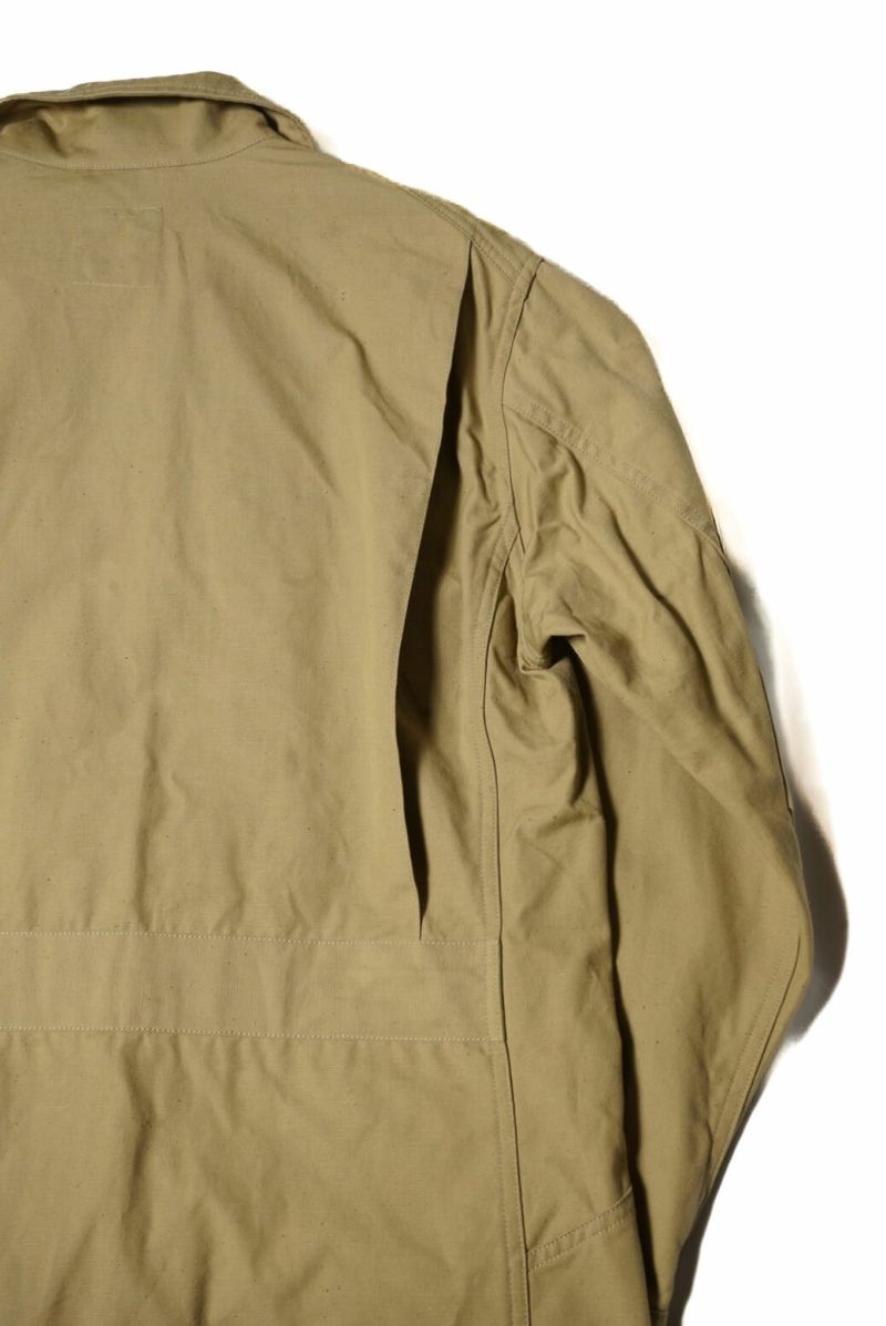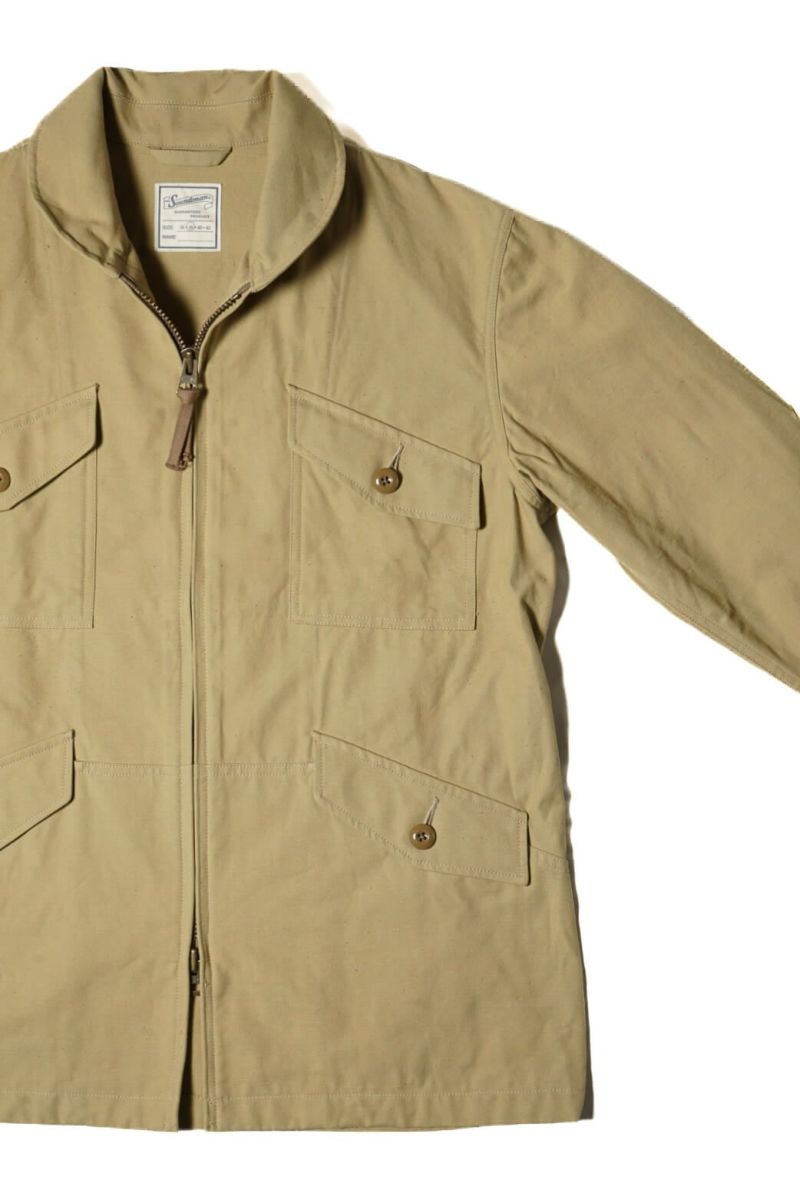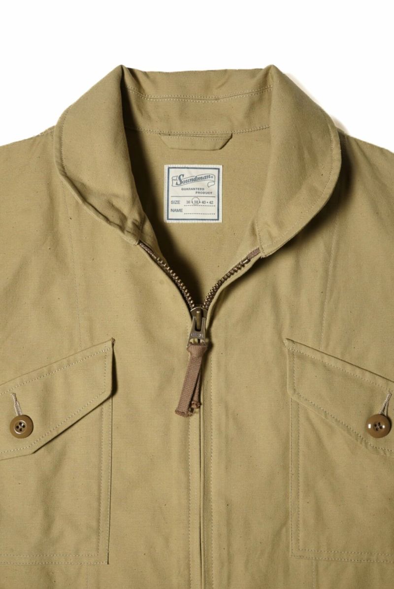 Soundman(サウンドマン) 40年代、USエアフォースの夏用のフライトジャケットM421をモチーフにリデザイン。フロントの4つのポケットは同じUSエアフォースの70年代CWU-7のディティールを取り入れ 、エルボーパッチ、アクションプリーツなど、ミリタリーディティールが詰め込まれているが、柔らかいイメージのラウンドカラーがそのハードさを緩和し街着として着易い一着となっている。素材はネップ混のコットンキャンバス。 <素材> COTTON 100% <生産国> MADE IN JAPAN Soundman / Morgan PRICE : ¥47,300(税込み) 品番 : 983M-404X
