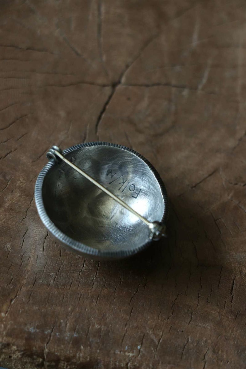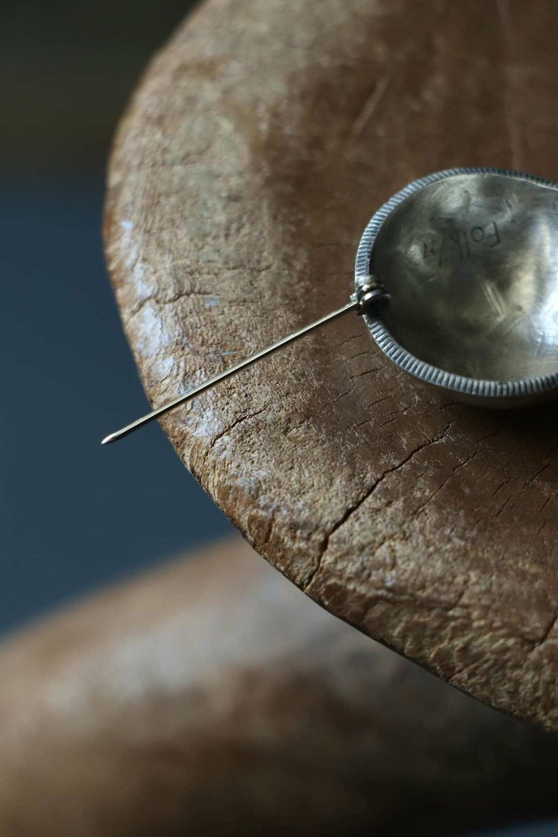【こちらは受注販売の商品です。】 全額前金制ですのでご了承ください。 お支払い方法は「クレジットカード」「Amazon Pay」「メルペイ」または「銀行振込」にてお願いいたします。「代金引換」はご利用いただけません。 ■お届け予定:受注から約1ヶ月~1ヶ月半 Folk/N(フォークバイエヌ) 20世紀を代表する画家”Georgia O'Keeffe"(ジョージアオキーフ)。芸術作品のみならず、孤高の生き方、アメリカモダニズム、生涯を通じてファッションや住居までも注目されています。そんな彼女が愛用していたナバホ族のSILVER BUTTON PIN にフォーカスして生まれたのが、Folk/NのVINTAGE COIN PINです。 世界で一番美しいとされる”MORGAN DOLLAR"コインを贅沢に使用し、裏から叩いてドーム型にしています。ナバホ族の伝統的な技法である叩き出しは、非常に手間がかかる作業です。手作業での技法は、表面に浮き出るデコボコとしたオーガニックなライン、無数の生々しく残る叩き傷、自然に古び酸化した光沢が魅力的です。 Folk/N / 【受注販売】Georgia O'Keeffe Vintage Coin Pin (Large Size) PRICE ¥30,800(税込)