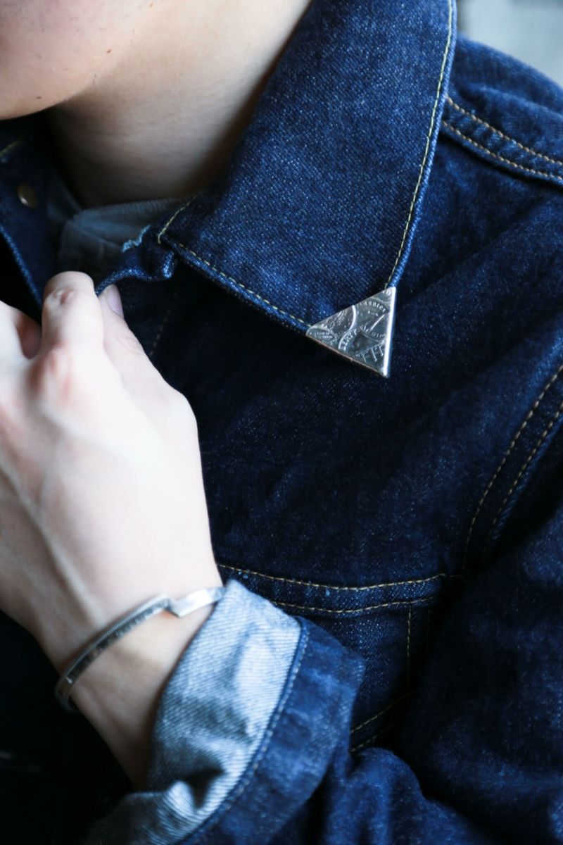 ウエスタンがデニムウェアーをフォーマルに着る際につけていたカラーコーナー。10セント硬貨を7枚使いサンプルを製作し、その型でシルバー900を使いキャストしたものです。