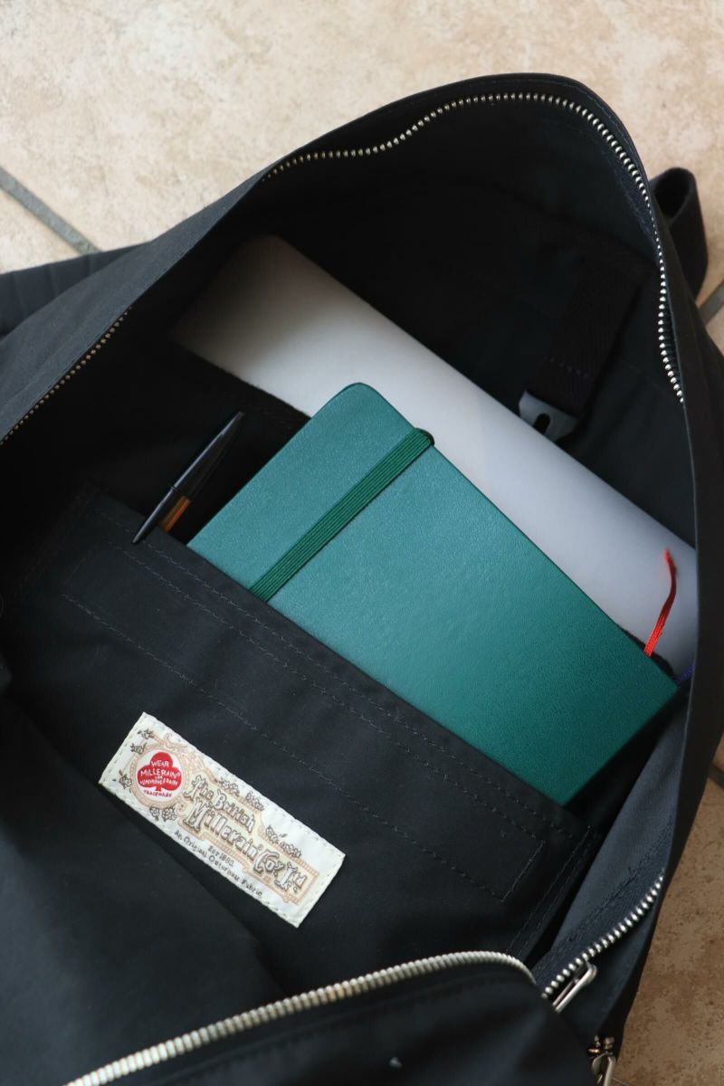 シンプルなデザインと機能的な素材が魅力的で、スタッフ間でも愛用者が多いAMIACALVA定番のバックパック。両サイドにはボトルホルダーとして使用出来るポケットと、内部には書類やパソコンを分けて収納できる三層の仕様になっています。シンプルなデザインでありながらも、実用的な機能も施されたアイテムです。