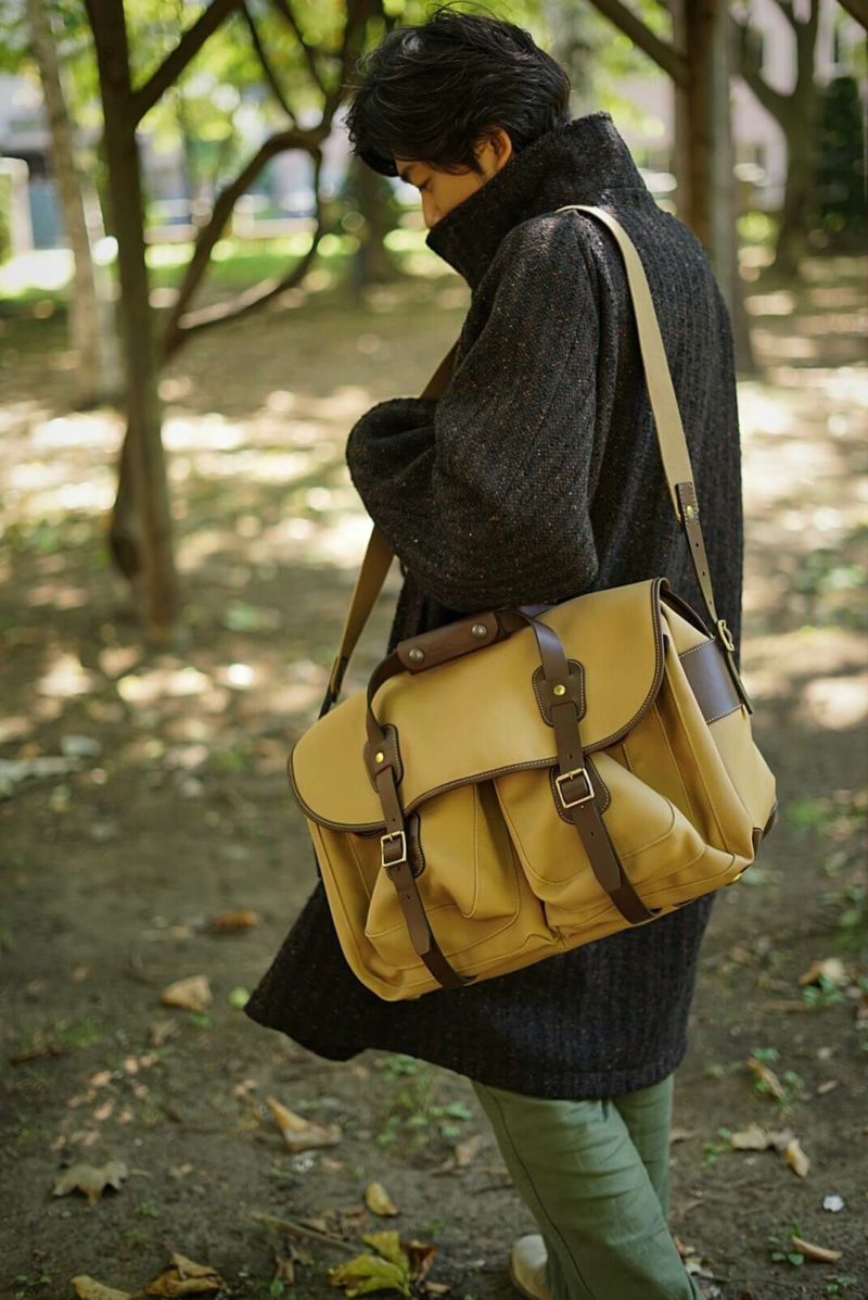 素材には、生地の間にフィルムをボンディングし表面にも撥水コーティングを施したコットンポリキャンバス生地、レザーにはブライドルレザーを使用しています。