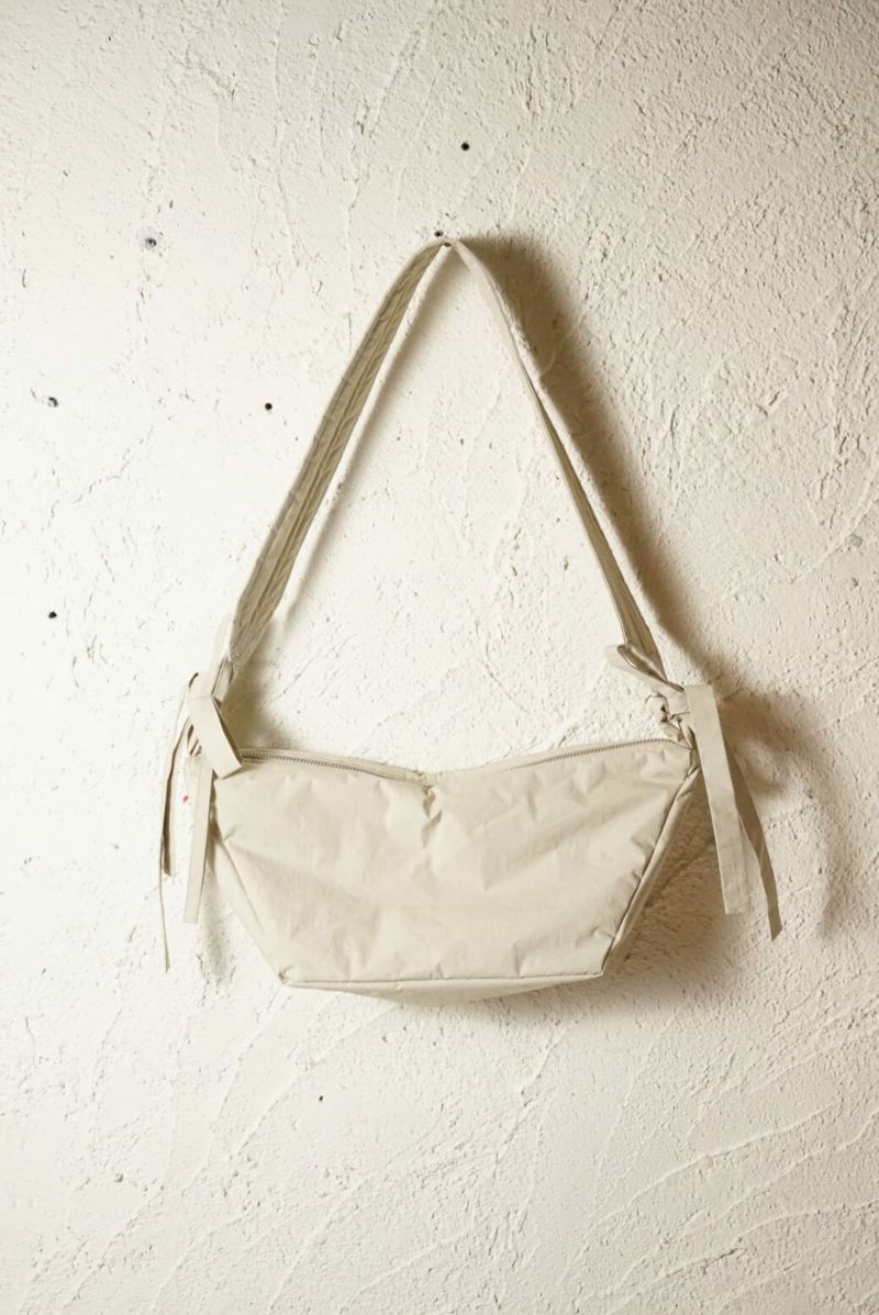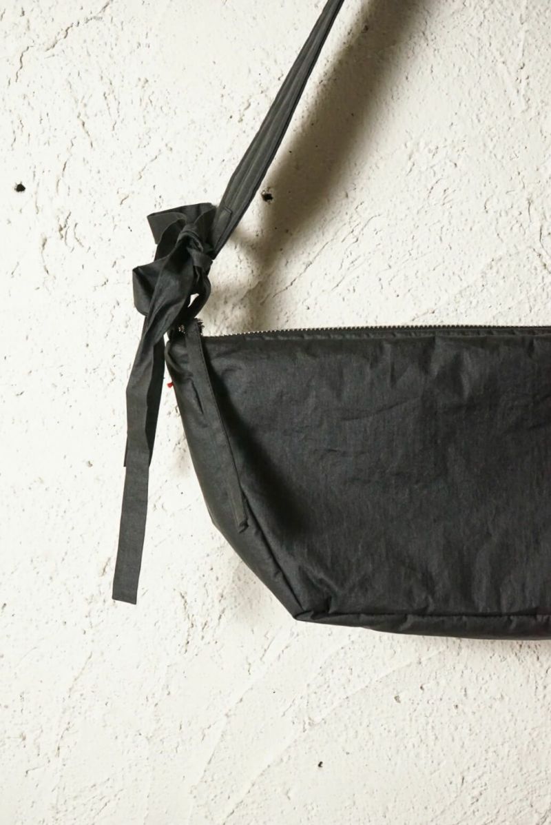 シンプルで日常使いに最適な機能を備えたショルダーバッグです。ジッパー以外の金具を使用せず、紐で長さを調整可能なストラップが付属。素材には軽量で滑らかなコットン生地を使用しています。