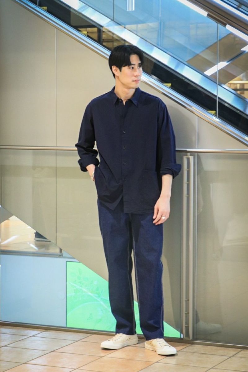 通常はインディゴを再利用することで濃く濁りが出てくることで深みや表情に重みがつくのですが、あえて鮮度にこだわった生地で浅めの色合いに。そのためロット毎の色調整が非常に難しくなっています。