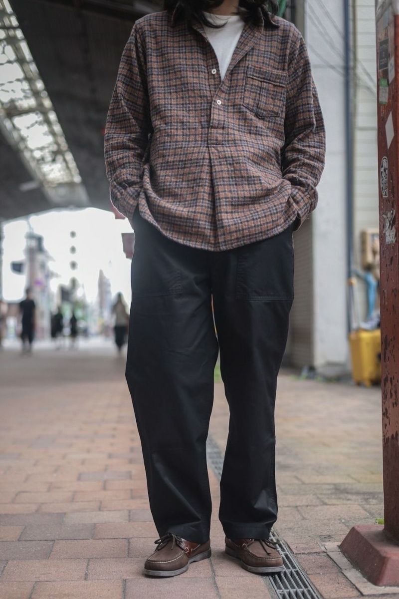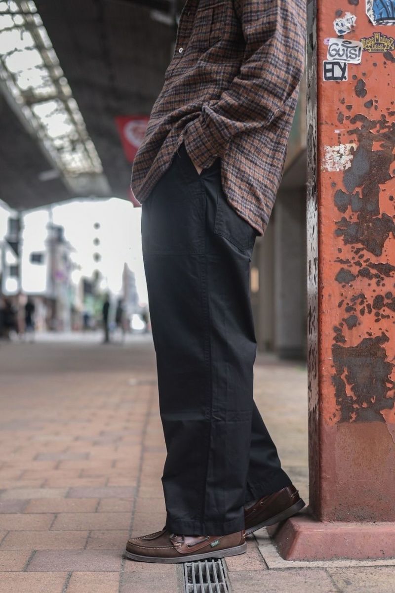 このUTILITY SLACKSは、60年代から70年代の米軍・ユーティリティトラウザーズを複数使い、独自に発展させた形です。太過ぎず細過ぎない絶妙な"ゆるさ"のサイズ感で、膝下から軽くテーパードする穿きやすい形です。