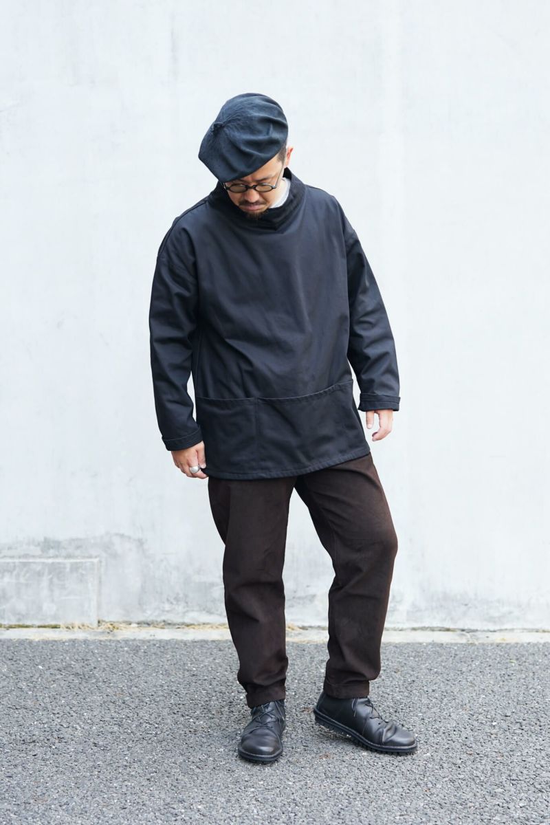 『ボロボロに擦り切れるまで着倒してもまだ捨てる事を躊躇(ちゅうちょ)してしまうような愛着のある古い洋服。私達のパリのアトリエで創られる洋服は、洗い、染め、ハンドステッチ、ツイスティング等の手作業の行程を行わずにお店に届く事はありません。そうやって、愛情を込めて(たまに小さい虐待も)手作業を加えた洋服はヴィンテージのような風合いになります。流行とは無関係で、快適であり、リラックス出来て、機能的である。既にリジットな質感や堅さ等の真新しい状態から、手間をかけて創り上げられた洋服は、すぐに愛着を感じて着る事が出来る、真のready-to wear (本来の意味は、既製服である)であるといえるでしょう。』