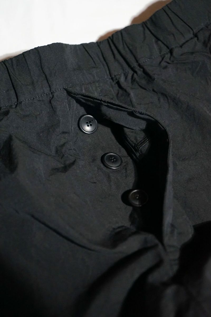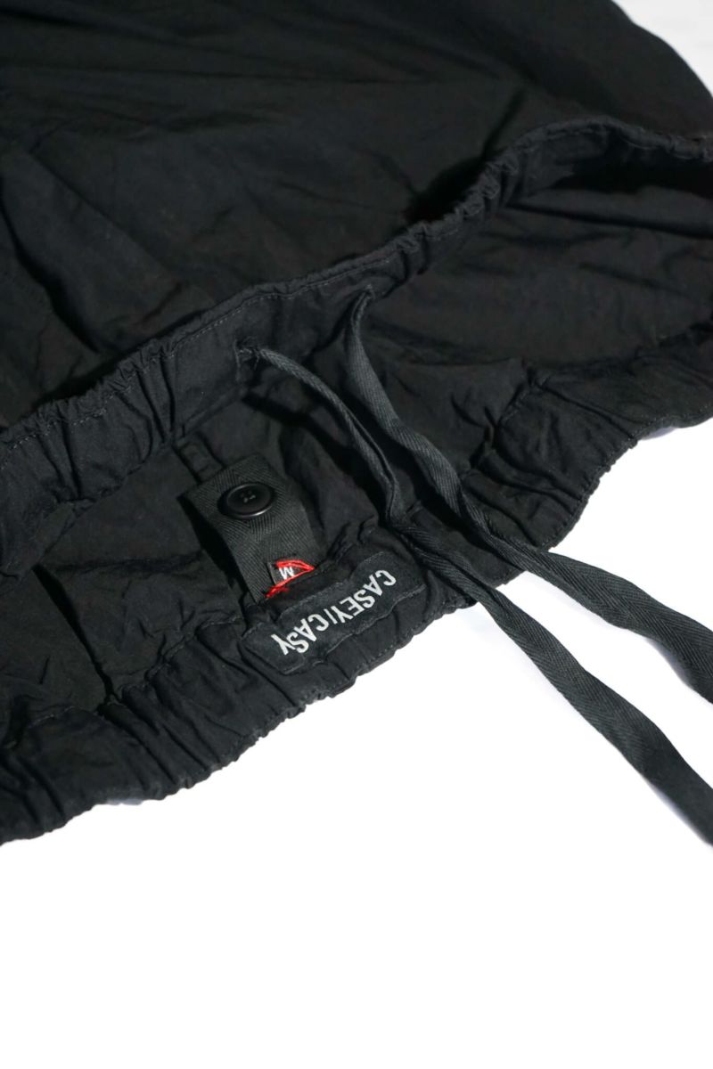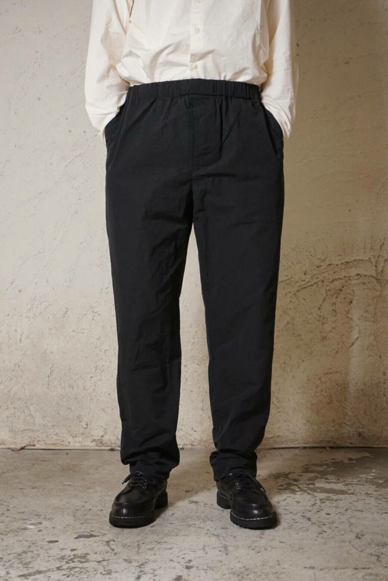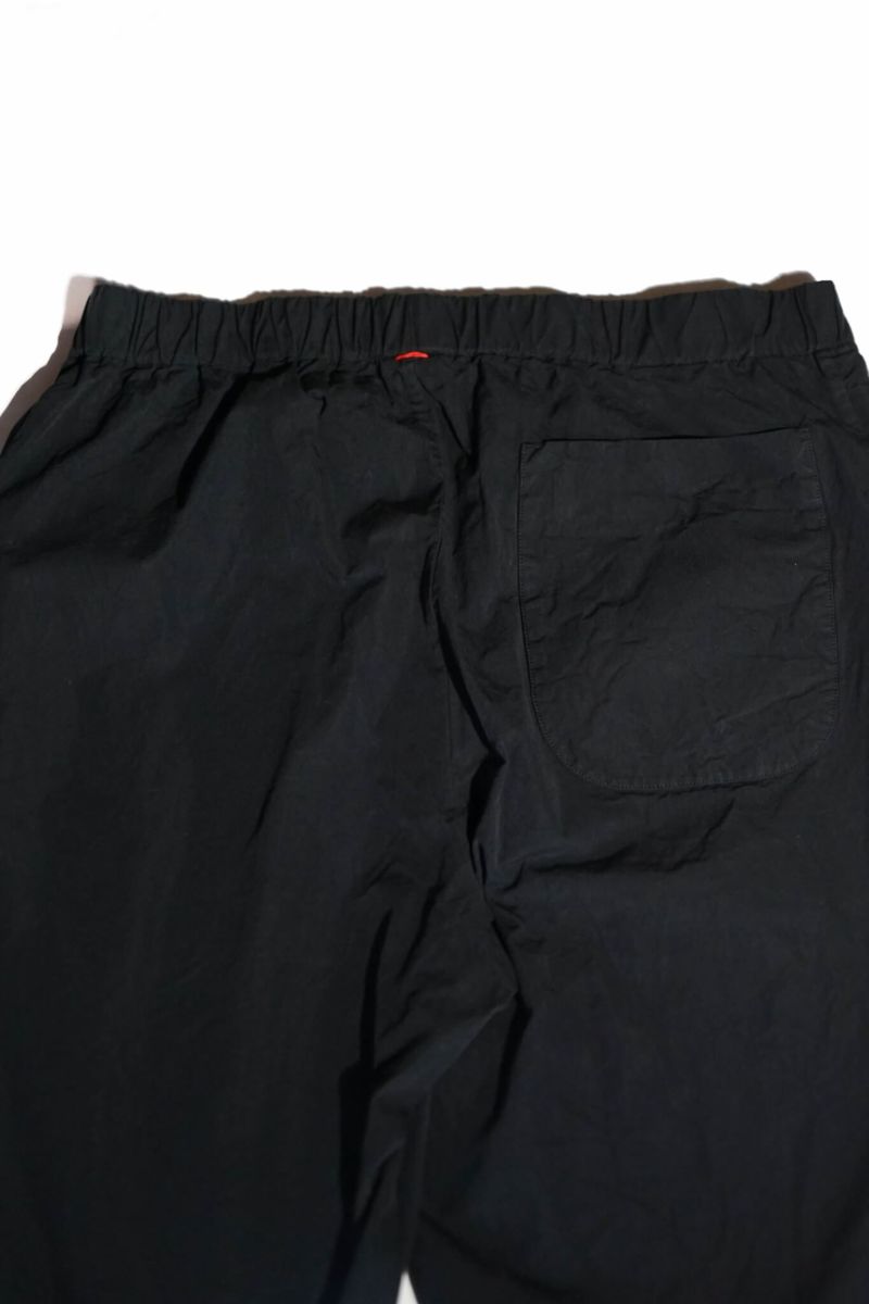 ブランドを象徴する生地であるペーパーコットンを使用したイージーパンツ。ゆとりのある腰回りに対して細めの裾幅が特徴的なシルエットを生み出しています。軽くてハリのある質感とウォッシュ仕上げによるシワ感が特徴です。リラックス感がありながらも洗練された雰囲気を醸し出す一本。