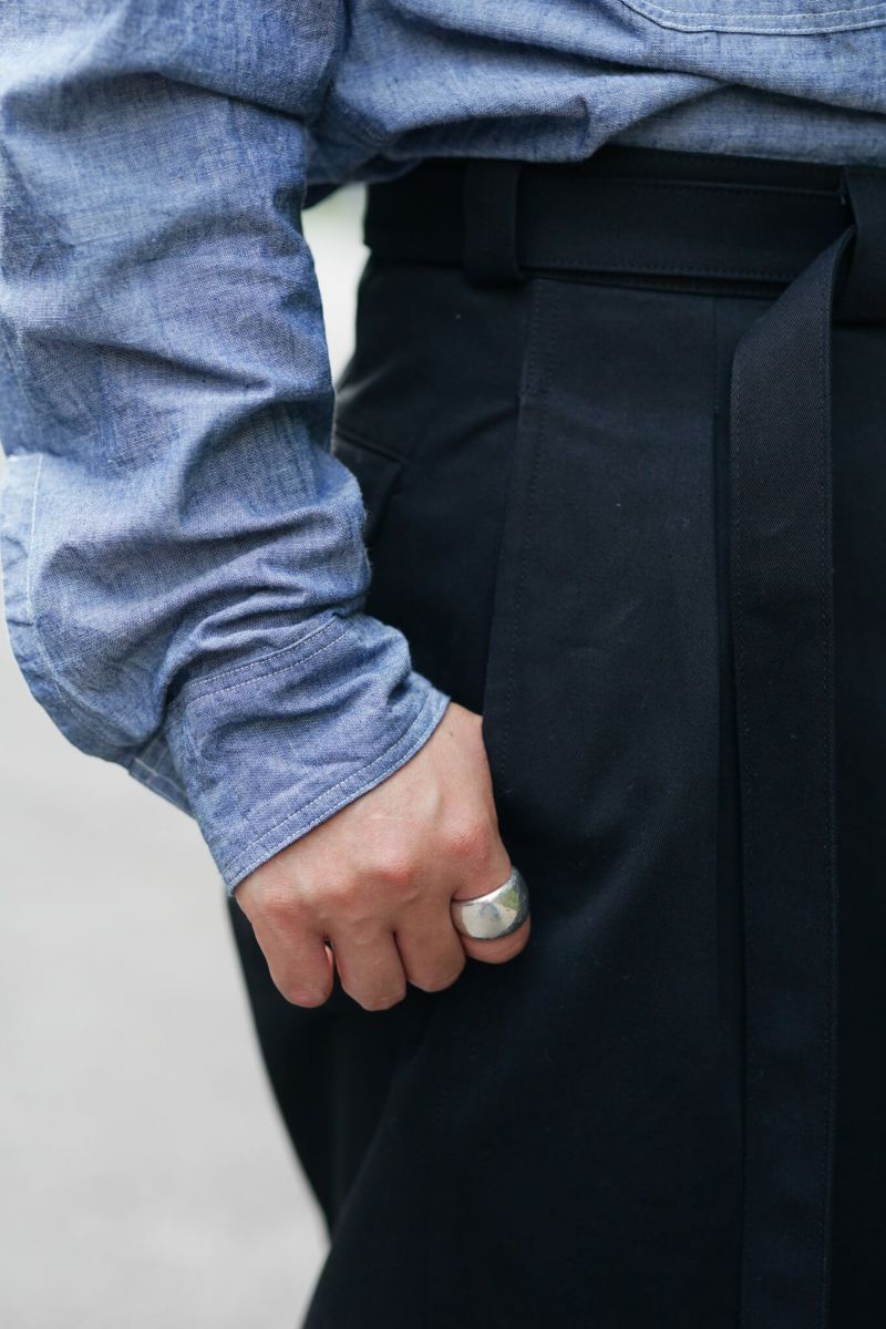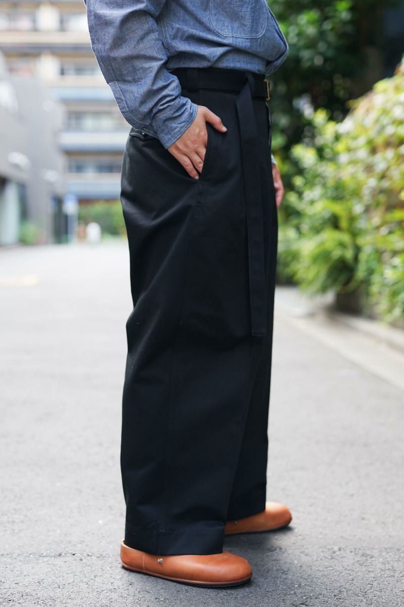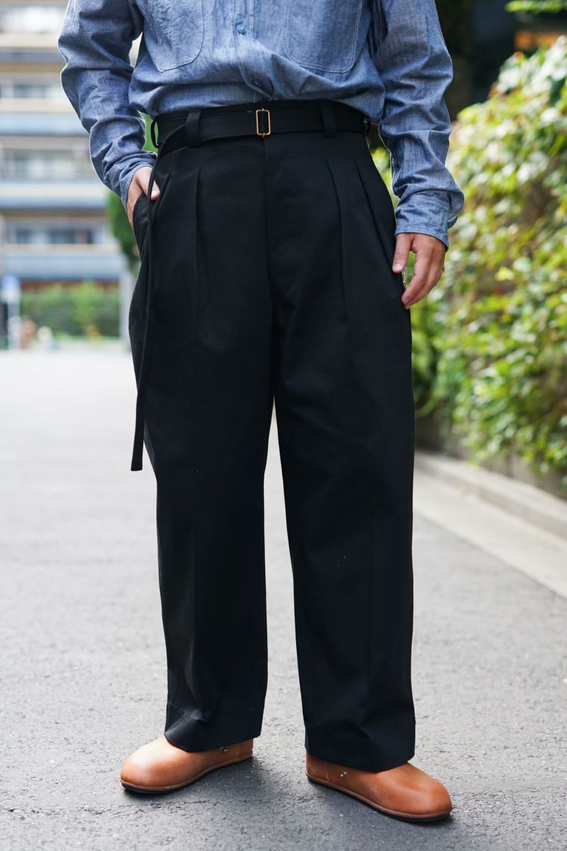 クラシックなシルエットを現代的にアレンジしたフレンチチノトラウザー。ワイドながらテーパードしたカットで、リラックス感と洗練されたフォルムが絶妙なバランスになっています。カジュアルからスマートカジュアルまで、幅広いスタイリングに対応します。素材は16単糸コームドコットン。高密度で滑らかな肌触りの良いチノで、洗った後も引き締まった表情を保ってくれます。同素材で仕立てた取り外し可能なベルト付き。