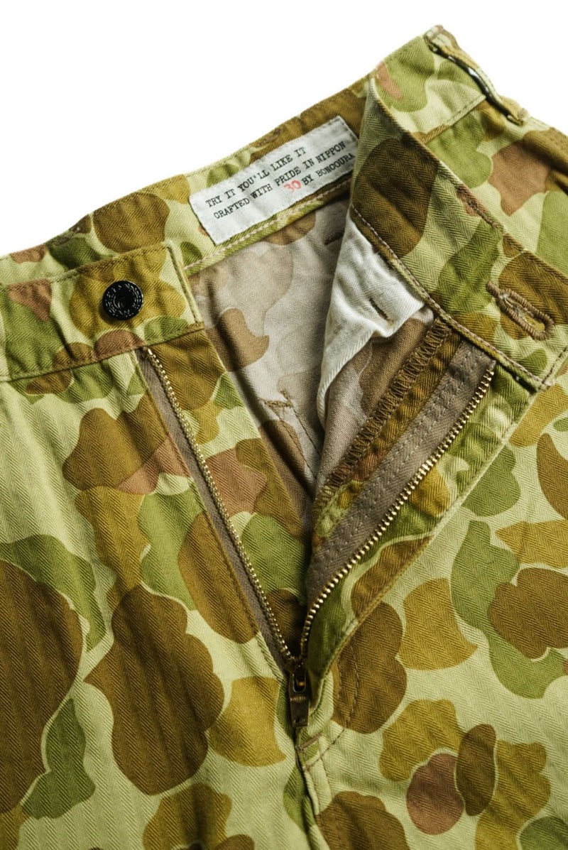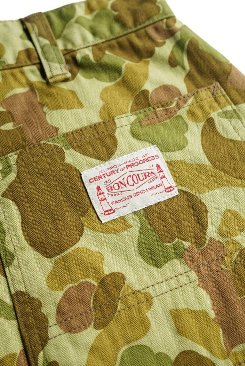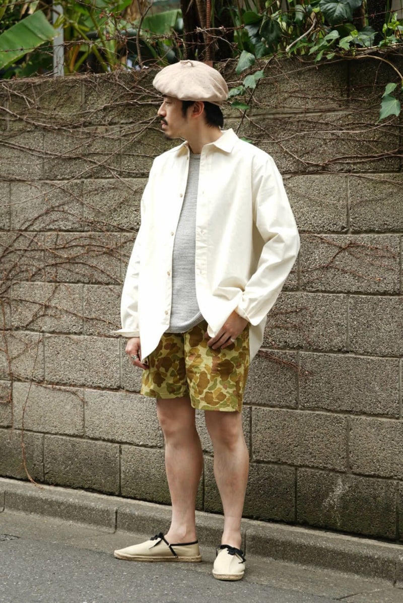 BONCOURA 24SSを代表する生地である、ダックハンターカモ。 フロッグスキンとも呼ばれるその柄を、ブランドらしいアプローチで取り入れています。