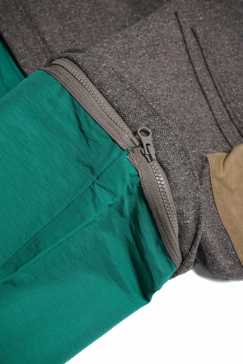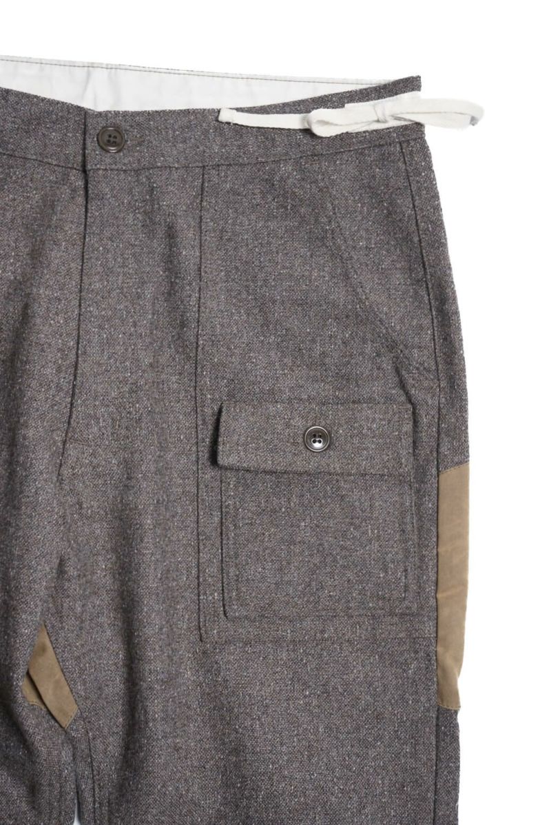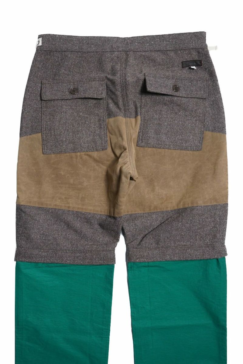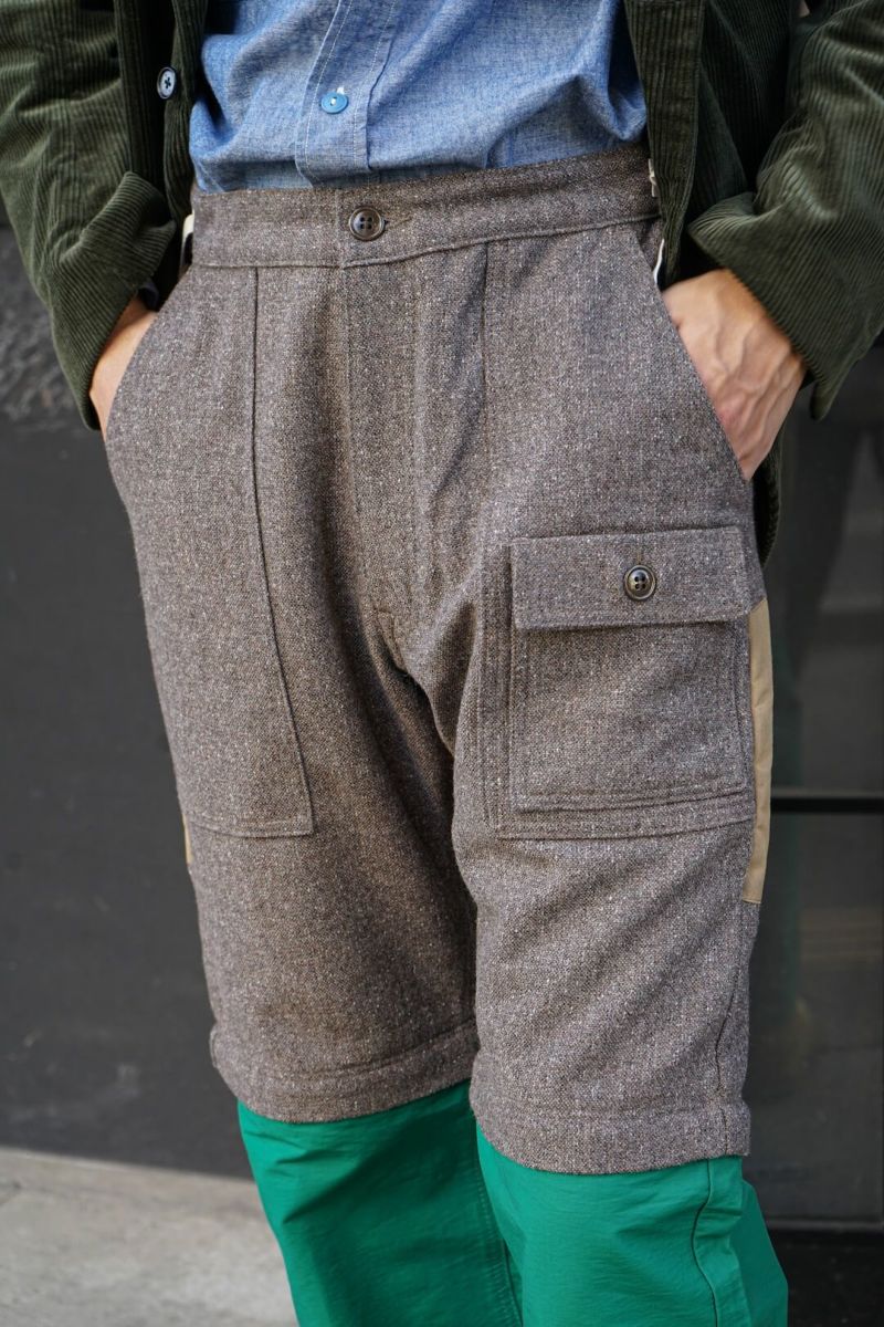 アイテム名にもあるように、フロントに5つ、バックに2つと、計7つものポケットを装備したパンツ。ウール素材とパラフィン加工が施された異素材のコンビネーションが、なんともヘヴィーデューティな雰囲気を醸し出します。膝下のコットン×ナイロン素材はジップで脱着可能なコンバーチブル仕様。