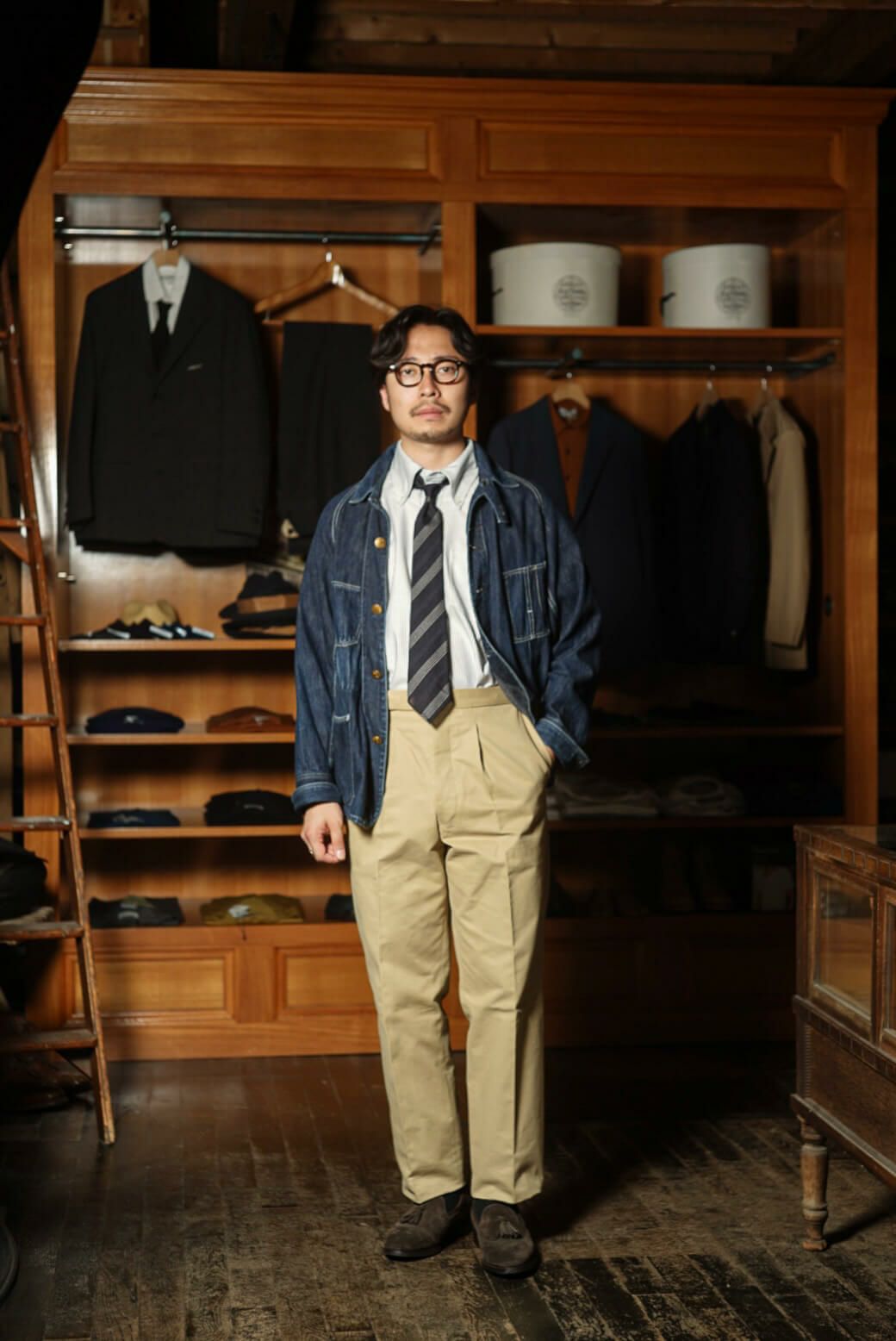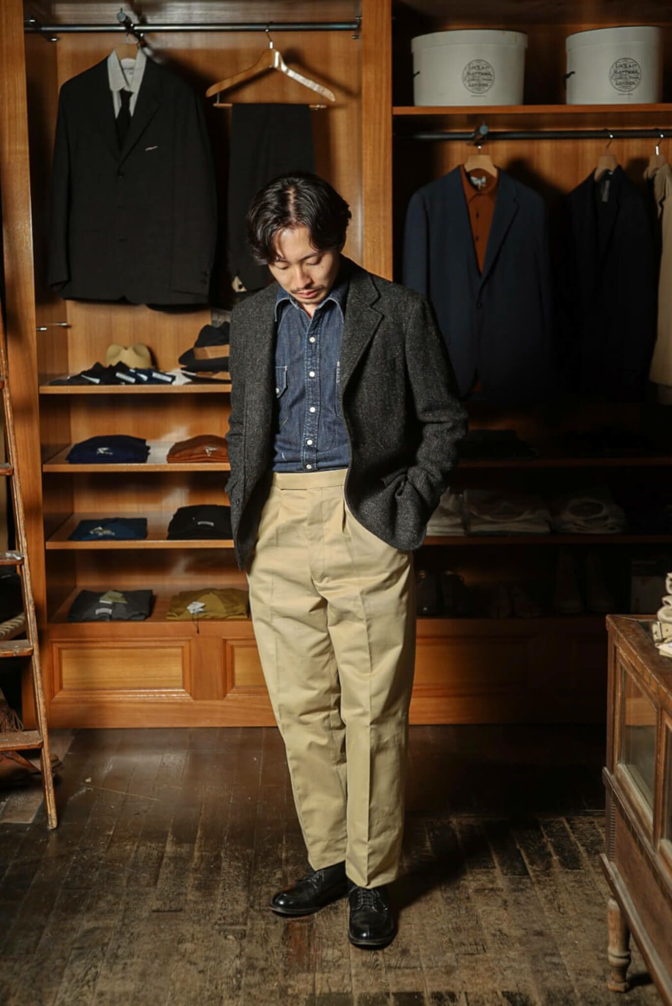 秋にはネイビーブレザー、冬には様々なカラーのツィードジャケットに合わせた王道のトラッドスタイルから、デニムのカバーオールやミリタリージャケットに合わせたカジュアルスタイルまで、幅広くお使いいただけます。
