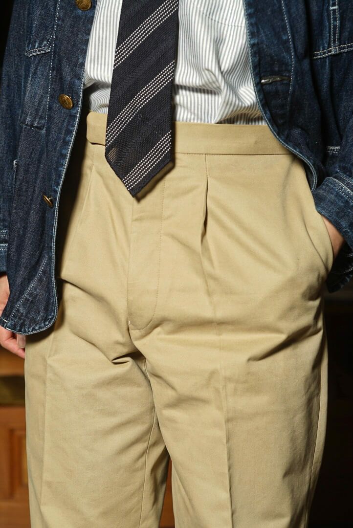 1800年代から存在する某英国ハンティングウェアブランドの伝統的なトラウザーズに着想を得て、クラシックでエレガントな1プリーツトラウザーズを新たに製作しました。