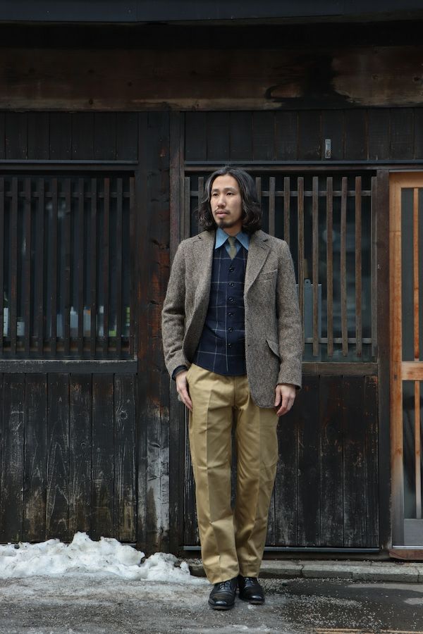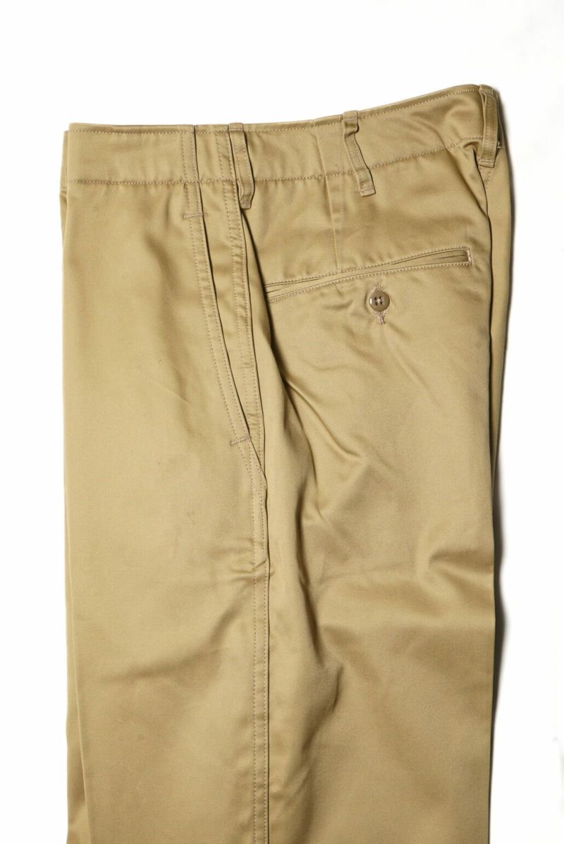 シルエットは1960年代、ディテールは1940年代にアメリカ軍に支給されていたチノトラウザースがベースとなったシルエットが綺麗な一本。高密度でコシがあり、光沢感のある上質なオリジナルチノクロスを使用。フロントはボタンフライ。