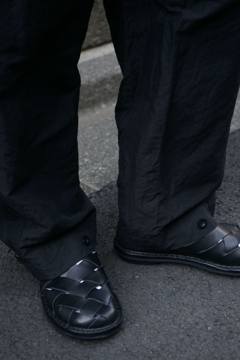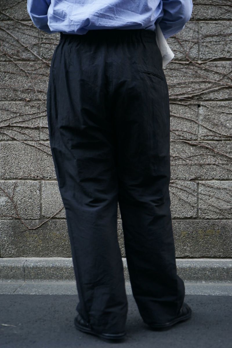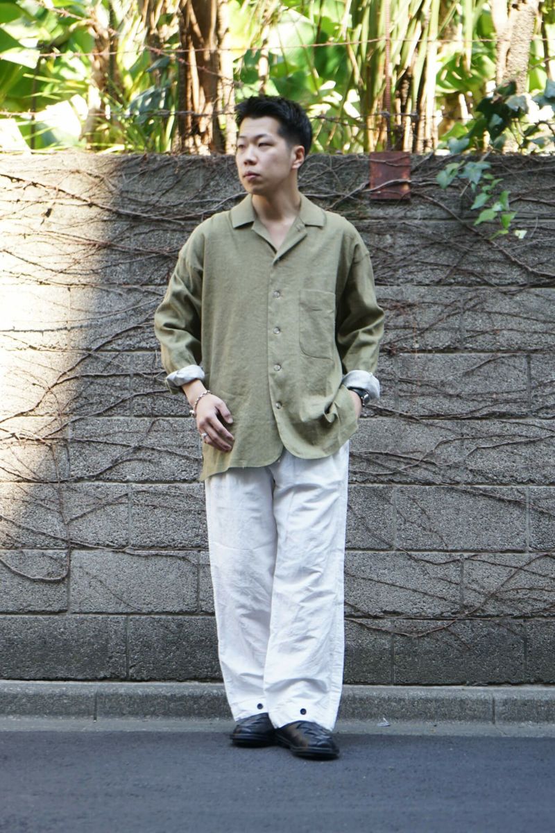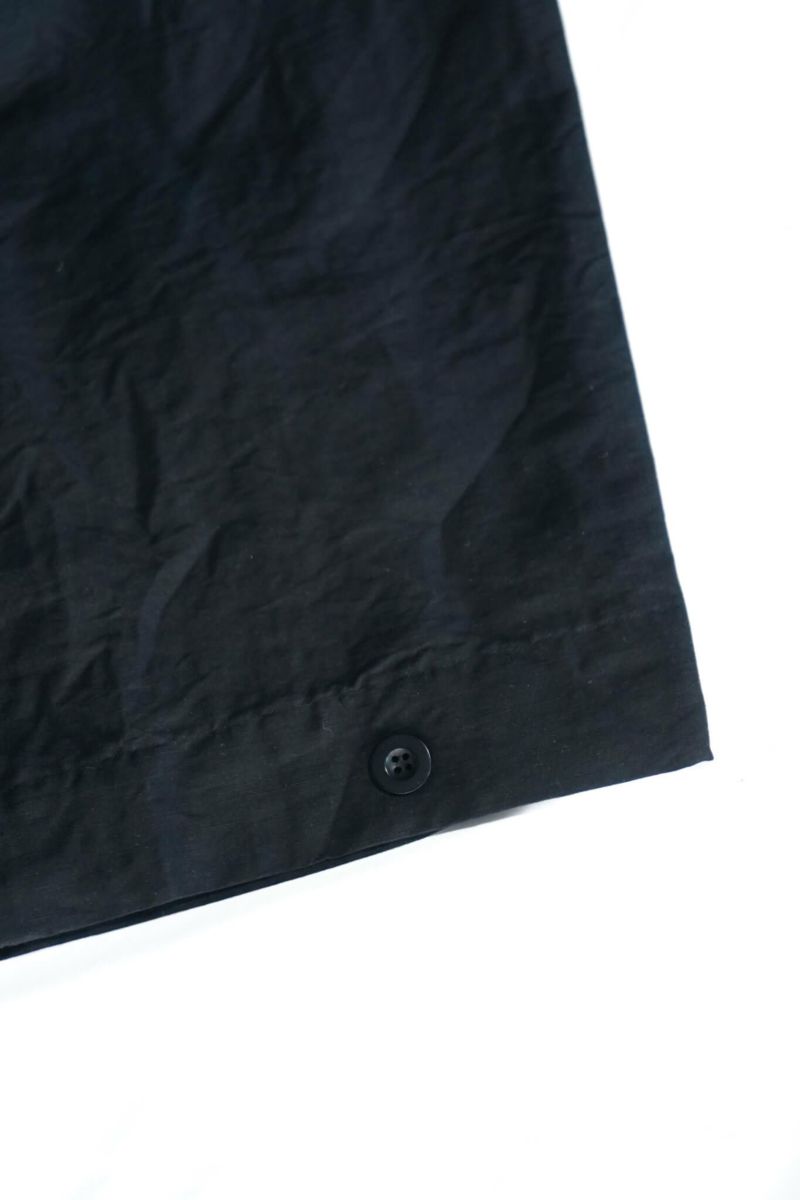膝下から緩やかにテーパードになっている、ワイドテーパードシルエットです。ウエストはゴムと紐がになっているイージーパンツの仕様。長めのでヘリンボーンになっている紐もポイント。裾にはボタンが付いているので、シルエットに変化を持たせることもできます。 素材はヘンプとコットンを使用。春夏らしい軽さと爽やかさを感じられる一着です。