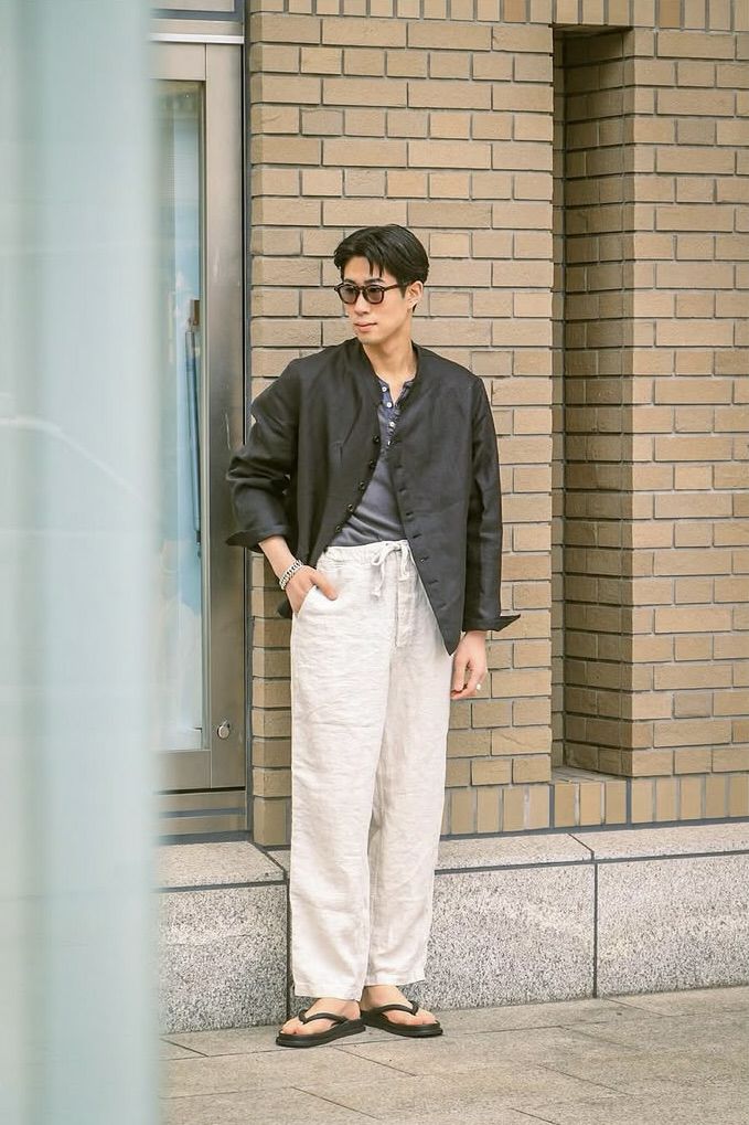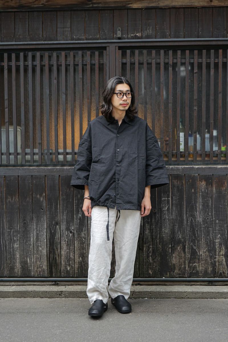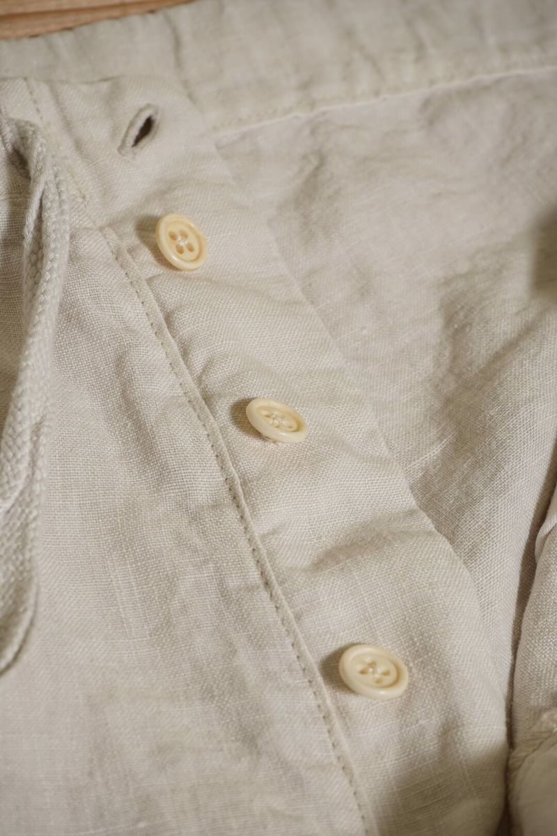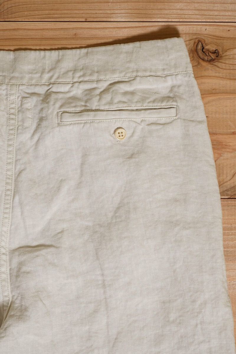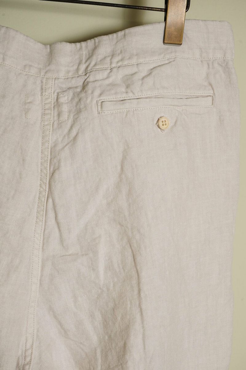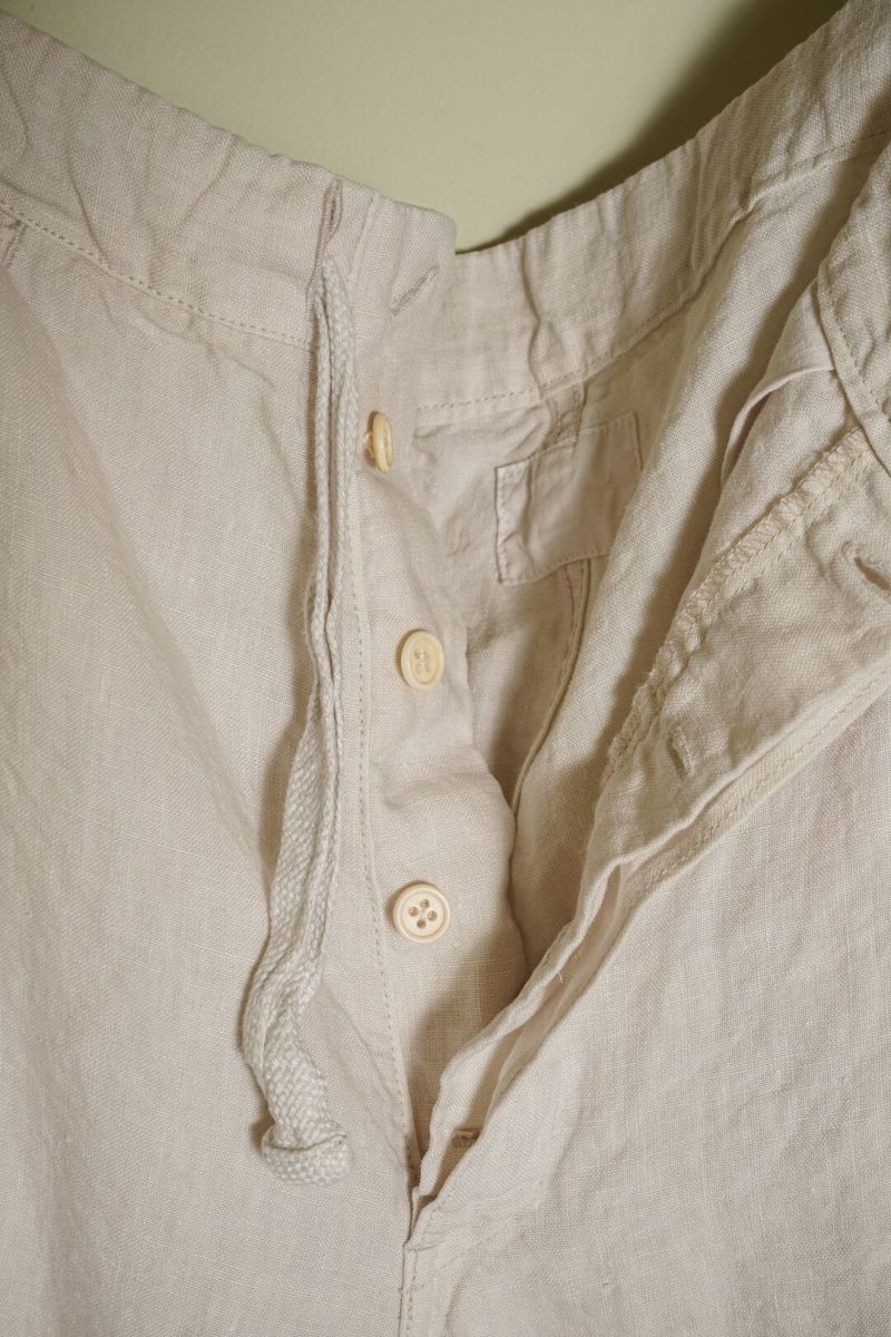 長い年月を経て変化したリネン生地の色合い、風合いを忠実に再現することに着目した「Discoloration = 変色」シリーズのイージーワークパンツ。