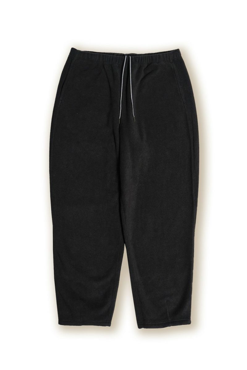 伸縮性のウエストバンドとドローコードでリラックス感のあるフリースパンツ。両面起毛で柔らかく暖かなフリース素材を使用しています。裾口はダーツでシルエットが調整されておりシューズの収まりが良いデザインです。