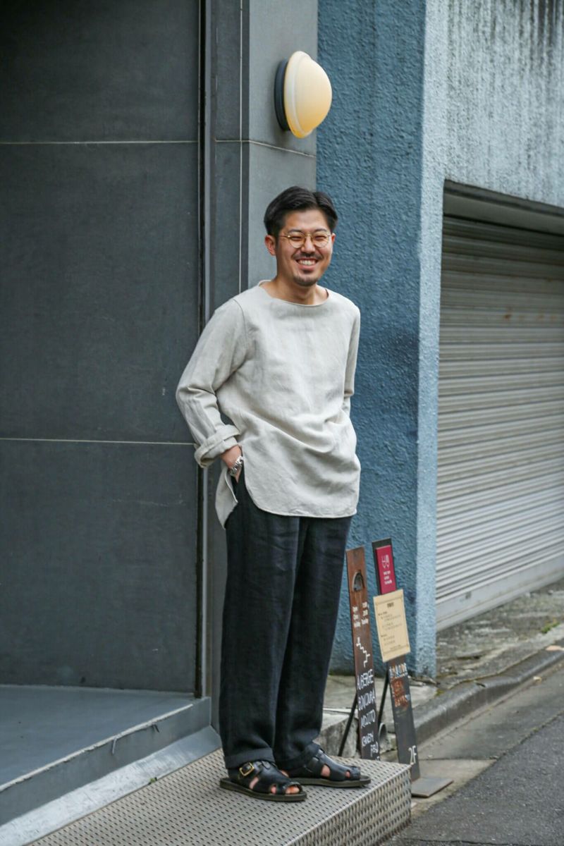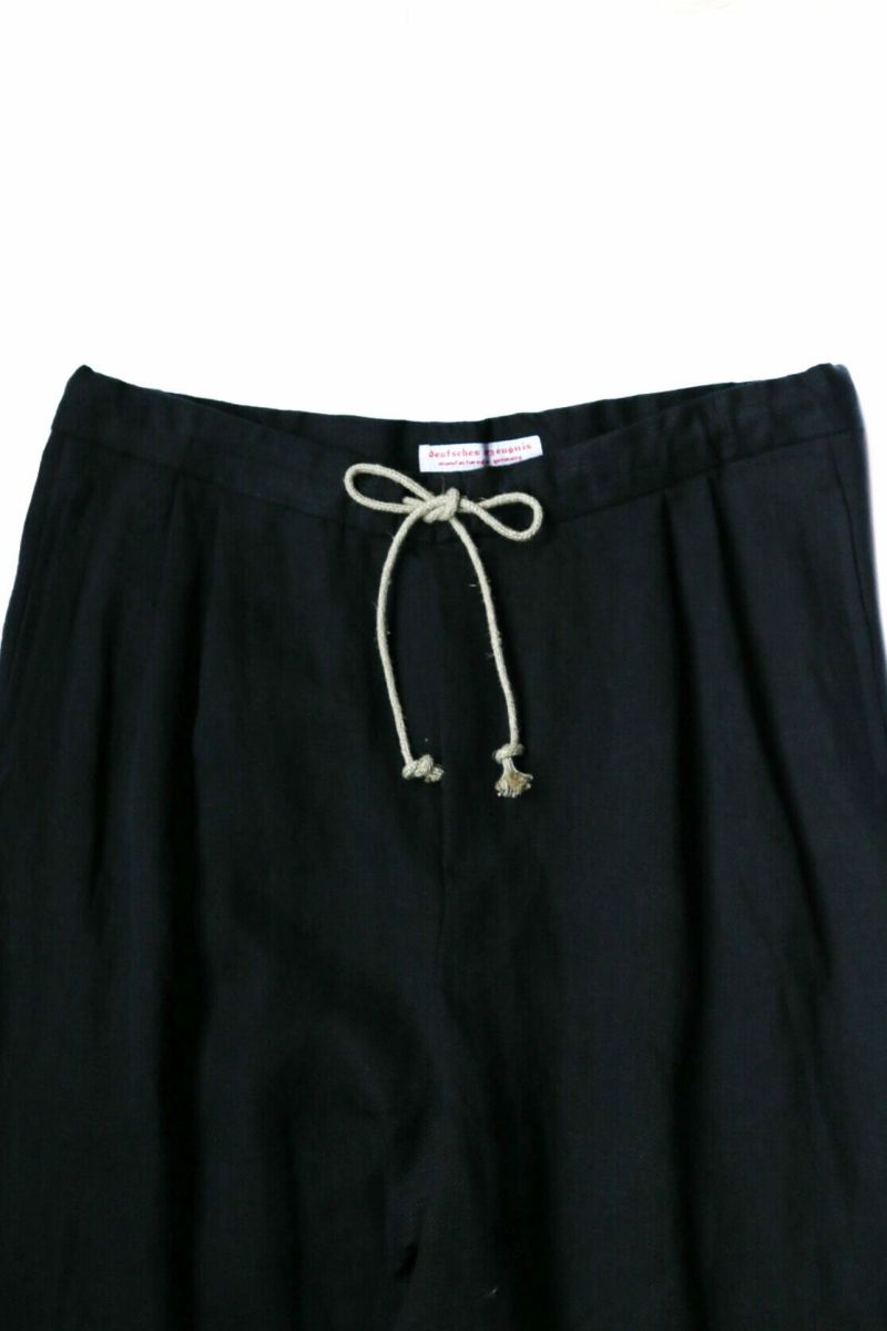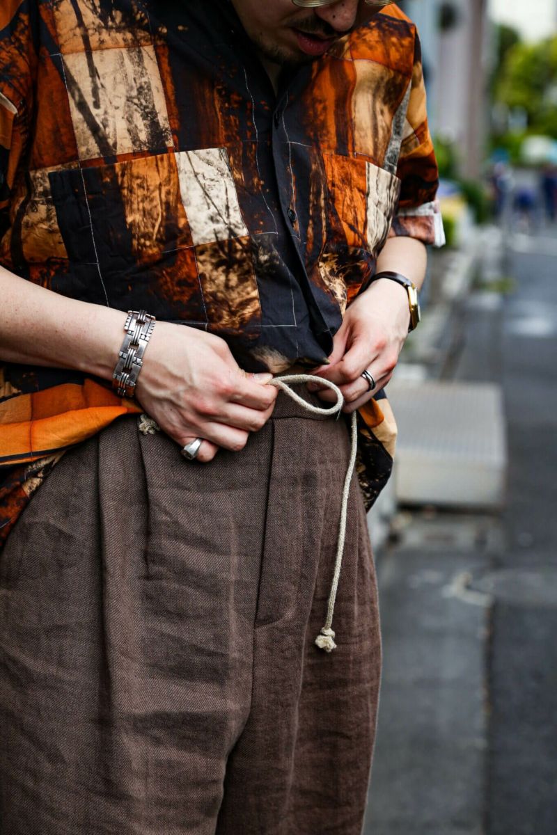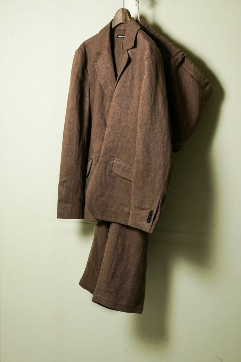 FRANK LEDER(フランクリーダー) "Bernburg / Saale(ベルンブルク / ザーレ)" SPRING / SUMMER このコレクションは、LOOK BOOK を撮影した町の名前にちなんで名づけました。Bernburg/Saale ベルンプルク/ザーレ。ザーレとは、この町を流れる川のことで、その名の通り、ルネッサンス時代の城であるBurg(ブルク)はありますが、ありがたいことに、改装業者の熱心な手はあまり加えられておらず佇まいがあります。1950年代のような雰囲気のドイツの小さくて面白い町を旅する男の物語。父が健業の宇生だった頃のことを思い浮かべ、お金はなくも、過去と現在の健物の歴史と意味を学びたいと熱望し、叔父から借りた自転車と、旅の計画を立てるための道路地図、空腹に耐えるための釣りを持ち、参考にするための写真を撮りながら旅をする物語です。このように学生時代に旅をするというコンセプトは、特に戦後の1950年代に流行したものです。人間が心と知識を広げるための旅です。 旧式の織機で織り上げた風合いの良いリネンの生地を使用したイージーパンツ。 <素材> 表地 : 100% LINEN ※ 生地に多少のツレやネップがある場合がございます。 裏地 : 100% COTTON コード : HEMP <生産国> MADE IN GERMANY 商品についてのブログはこちら FRANK LEDER / WASHED OLD LINEN 2TUCK DRAWSTRING TROUSERS PRICE : ¥86,900(税込み) 品番 : 0513011 FWL 4