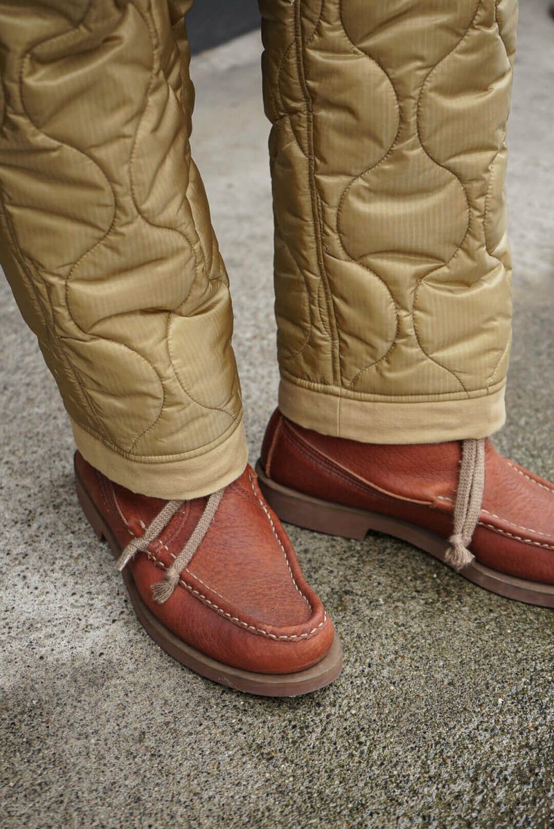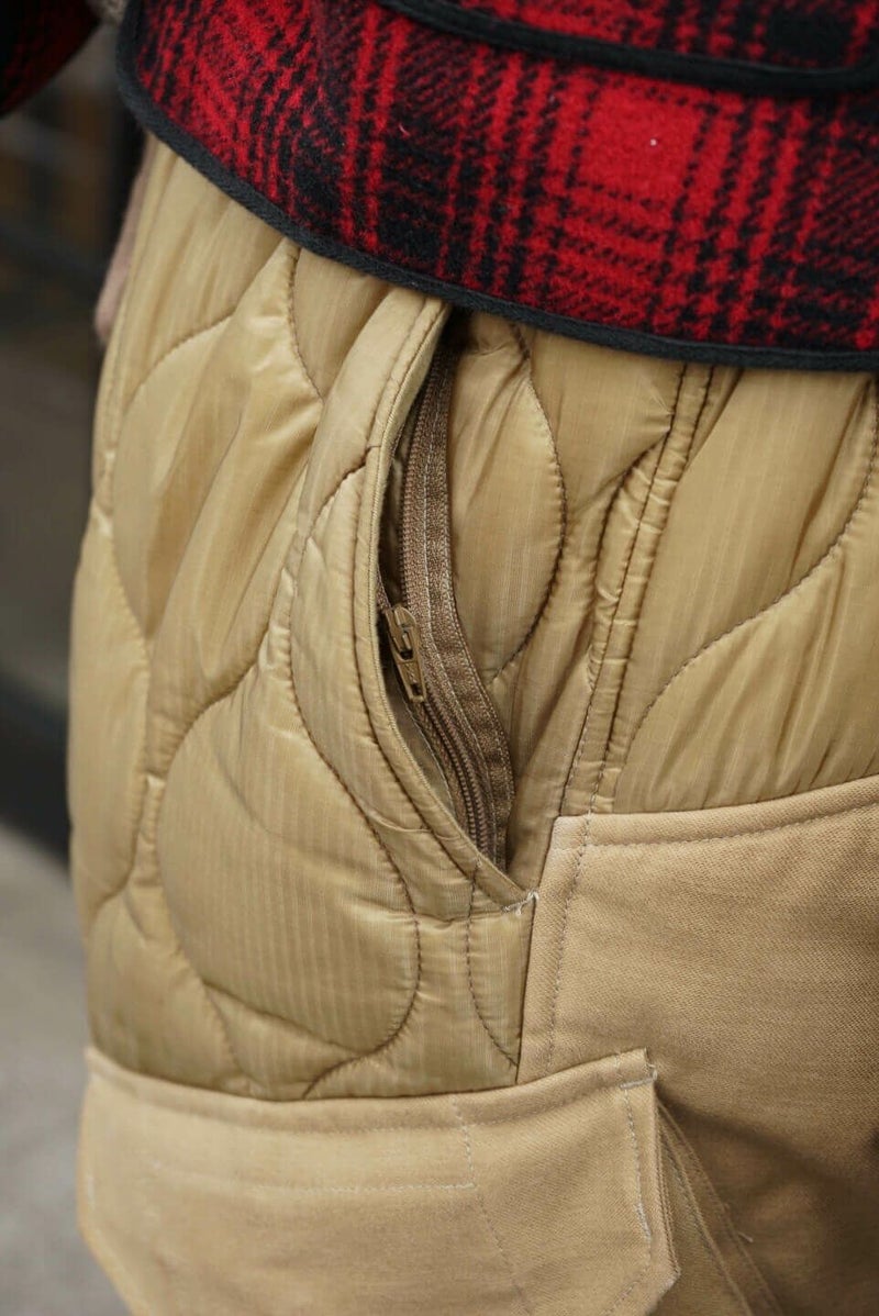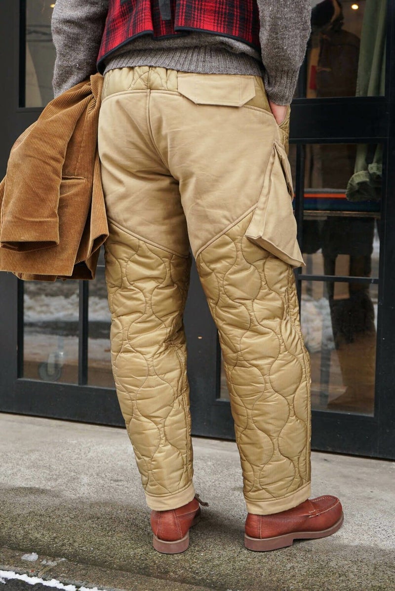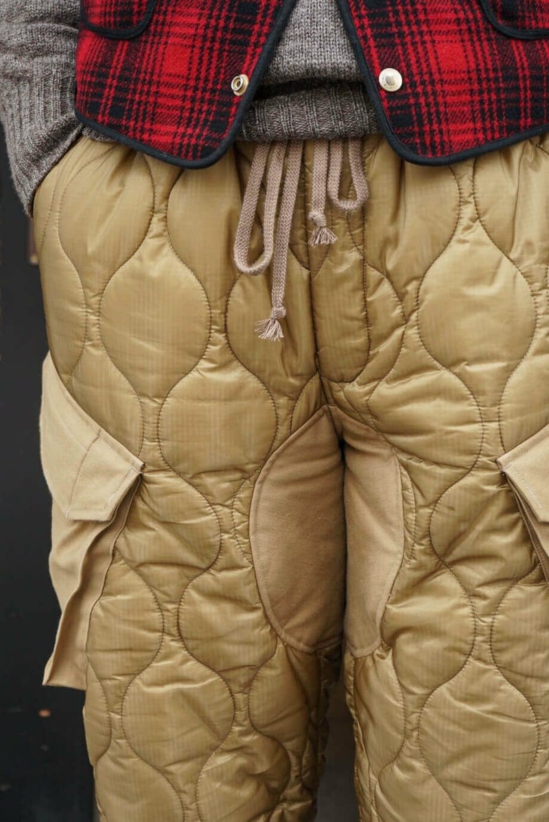 MOJITO(モヒート) 『アーネスト・ミラー・ヘミングウェイ』のライフスタイルや作品がデザインソース。ブランド名はヘミングウェイが愛したとされているモヒートに由来しています。 デザイナー山下氏が愛用されているミリタリーのキルティングライナーパンツをモチーフとした新型の中綿入りパンツ。ポケットとヒップ、裾部分には1970年代の「OG 107 Sateen Shirts」を再現されバックサテン地を使用しています。 <素材> 表地 : ナイロン 100% 裏地 : ナイロン 100% 中わた : ポリエステル 100% 別布 : コットン 100% <生産国> MADE IN JAPAN MOJITO / DUCK HUNTING PANTS PRICE : ¥61,600(税込み) 品番 : 2043-1403