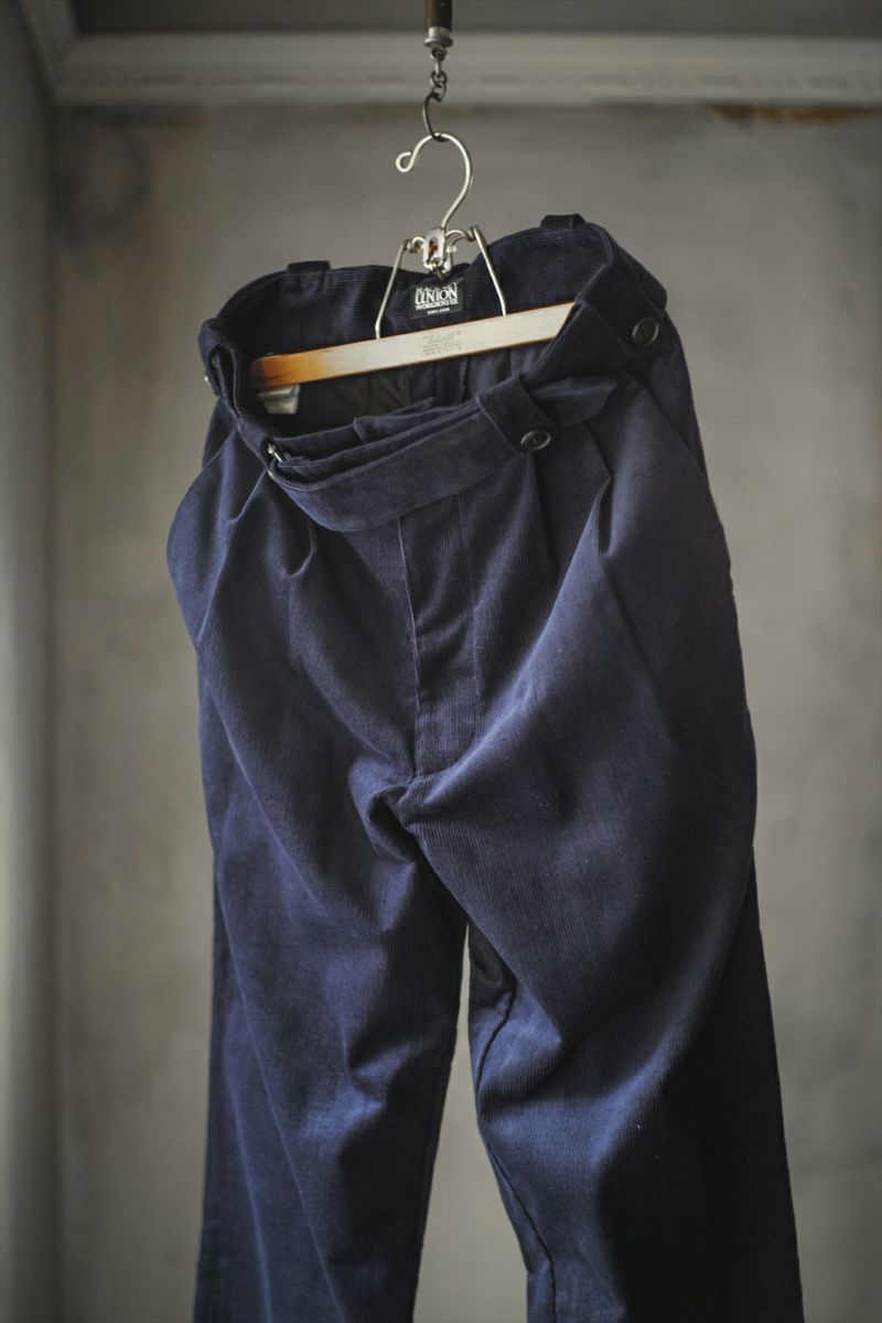 ヨーロッパのミリタリー物を彷彿とさせるベルト付きの2プリーツトラウザーズです。素材には細畝のコーデュロイ生地を使用。クラシックなパターンや凝ったディテールデザインなど、HUWらしさが存分に感じられる一着です。 同素材のORBAL JACKETとセットアップでの着用もおススメです。 【ORBAL JACKETはこちら】 MADE IN ENGLAND COTTON 100% HACKNEY UNION WORKHOUSE / ORBAL TROUSERS Price ¥59,400-(税込)