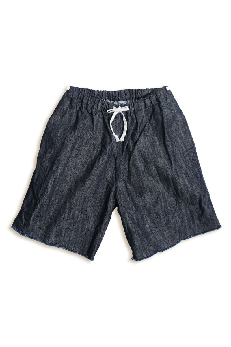 古き良きアメリカンワークウェアの雰囲気を感じさせるトリプルステッチを用いたコレクションより登場したデニム素材のイージーショーツです。カットオフの裾やヒップ部分の当て布も特徴的なデイテール。穿き込んだ後のエイジングも楽しみな一本です(ワンウォッシュ済み)。