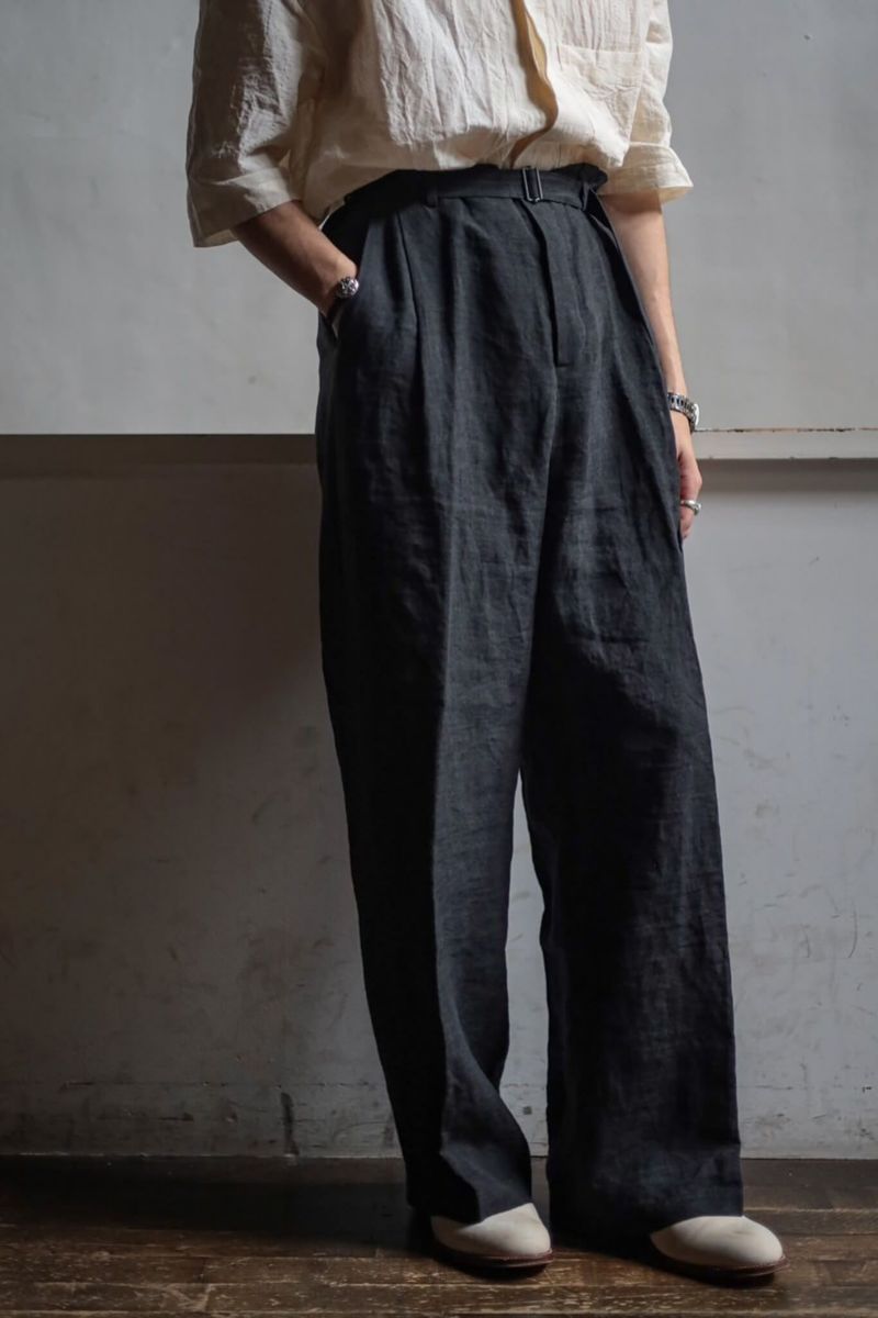 デザイナーの得意とするドレーピングのテクニック、洗練された素材使いによって、クラシックな洋服がベースにありながらも、スタイリッシュかつモダンな印象に仕上げられた一着。