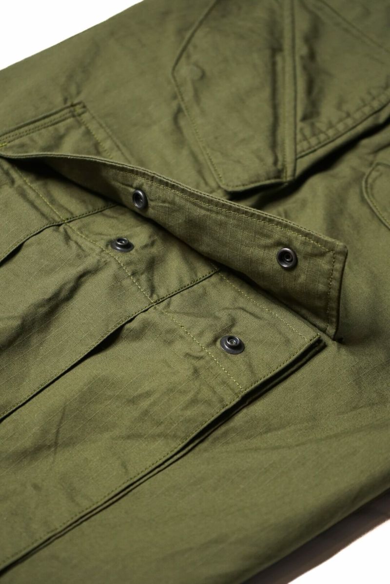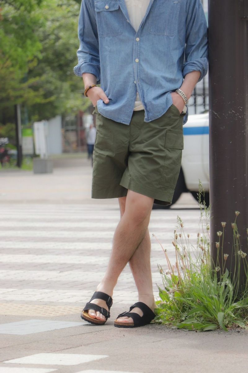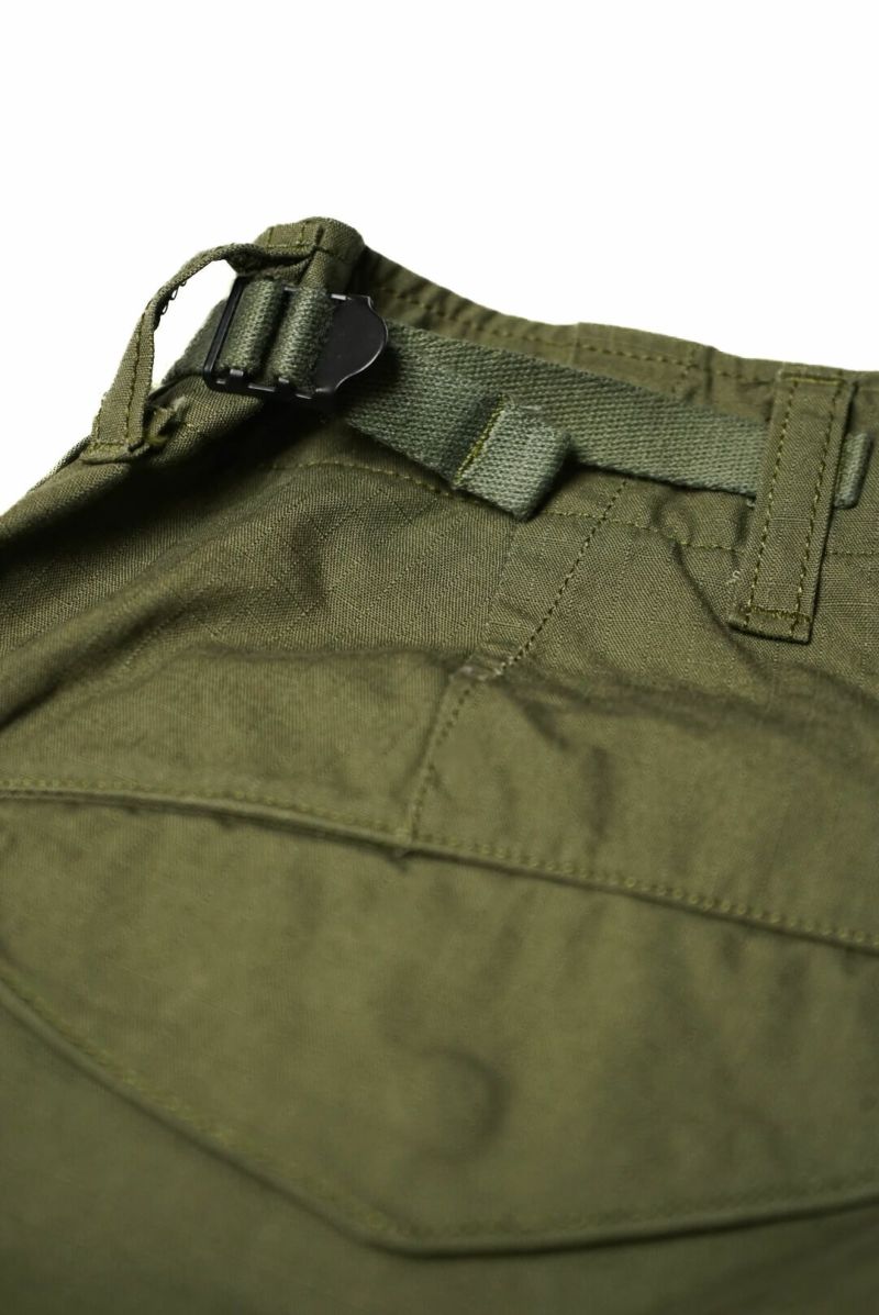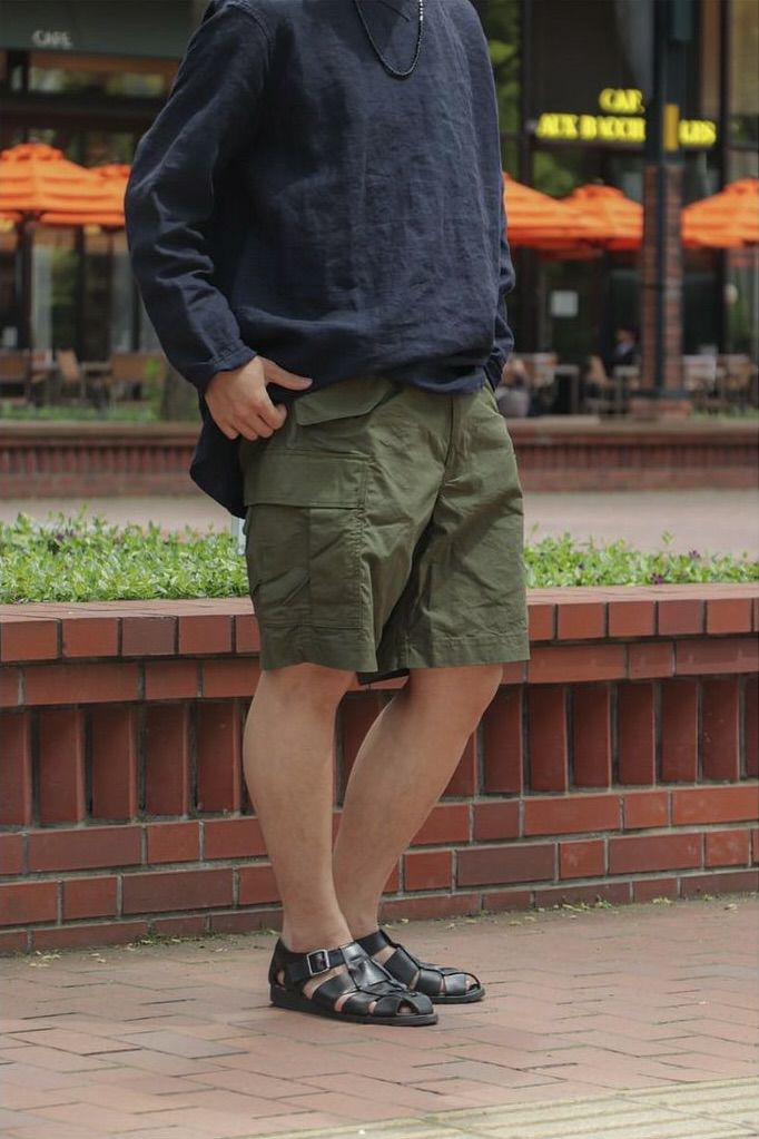 US ARMYの通称"M-51パンツ"をベースとしたショートパンツを別注品として製作していただきました。ポケットの仕様などはオリジナルの仕様を踏襲しつつ、現代的に無駄となるディテールは省き、シルエットはある程度の太さを残しながらもアレンジされています。素材はコットンリップストップを使用。