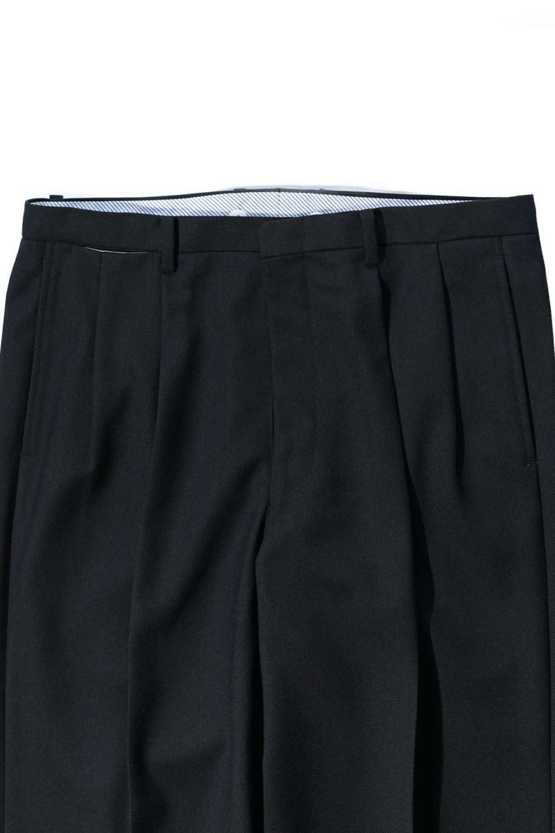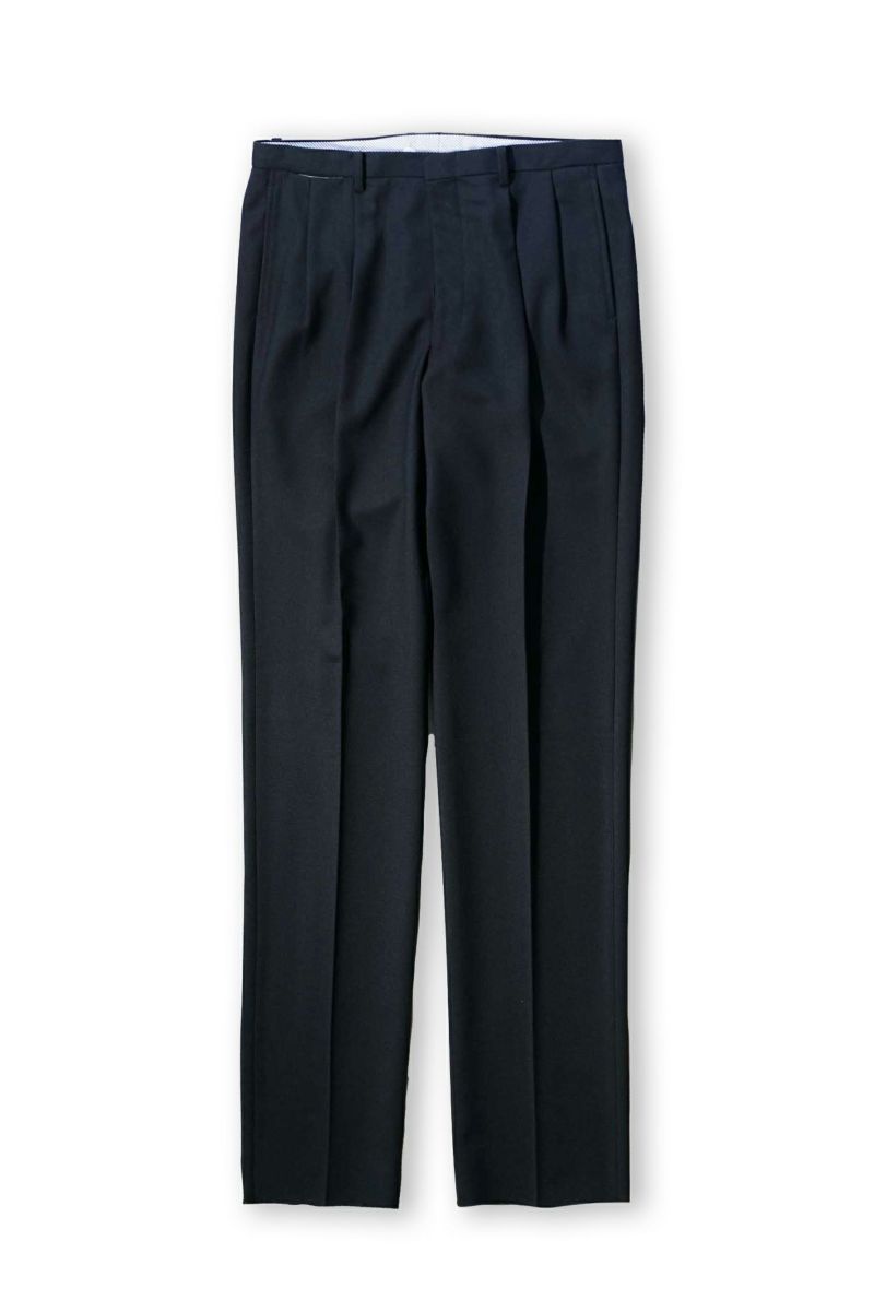 フロントに2タック入れた、やや直線的なシルエットのトラウザーは腰回りにゆとりがあり、裾に向けてテーパードになっています。